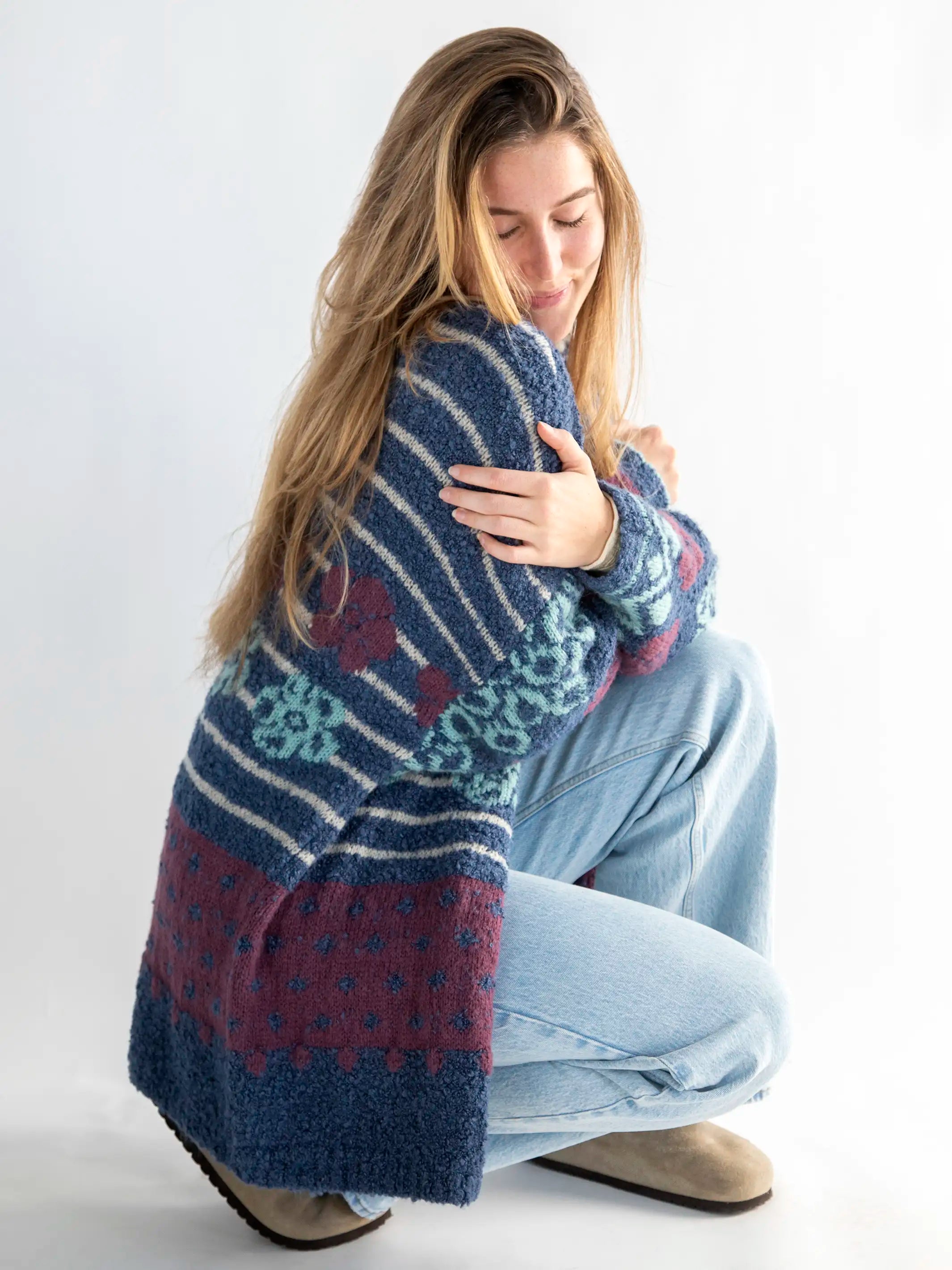 Calla Jacquard Cardigan Sweater - Indigo