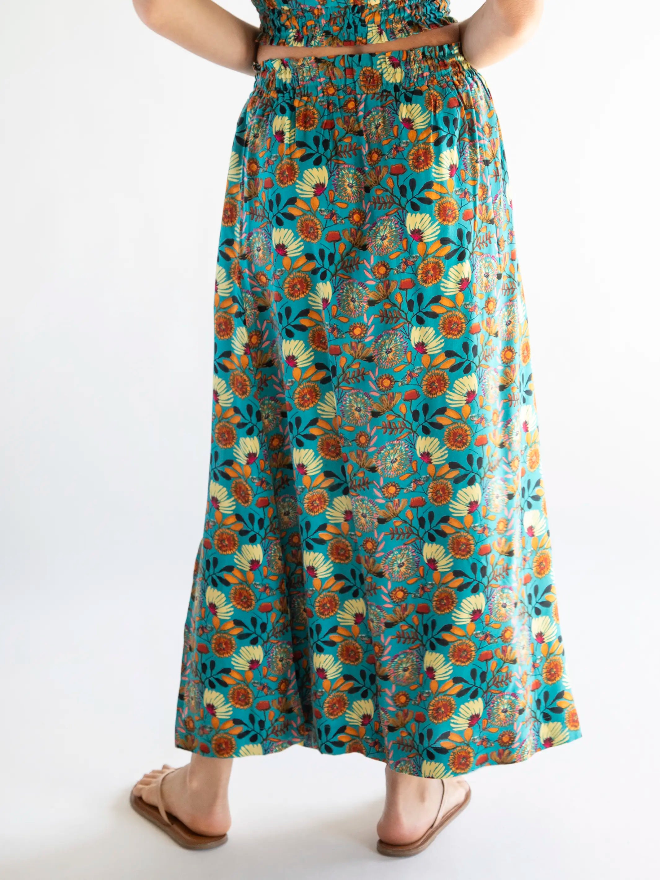 Carmen Smocked Midi Skirt - Blue Orange Floral