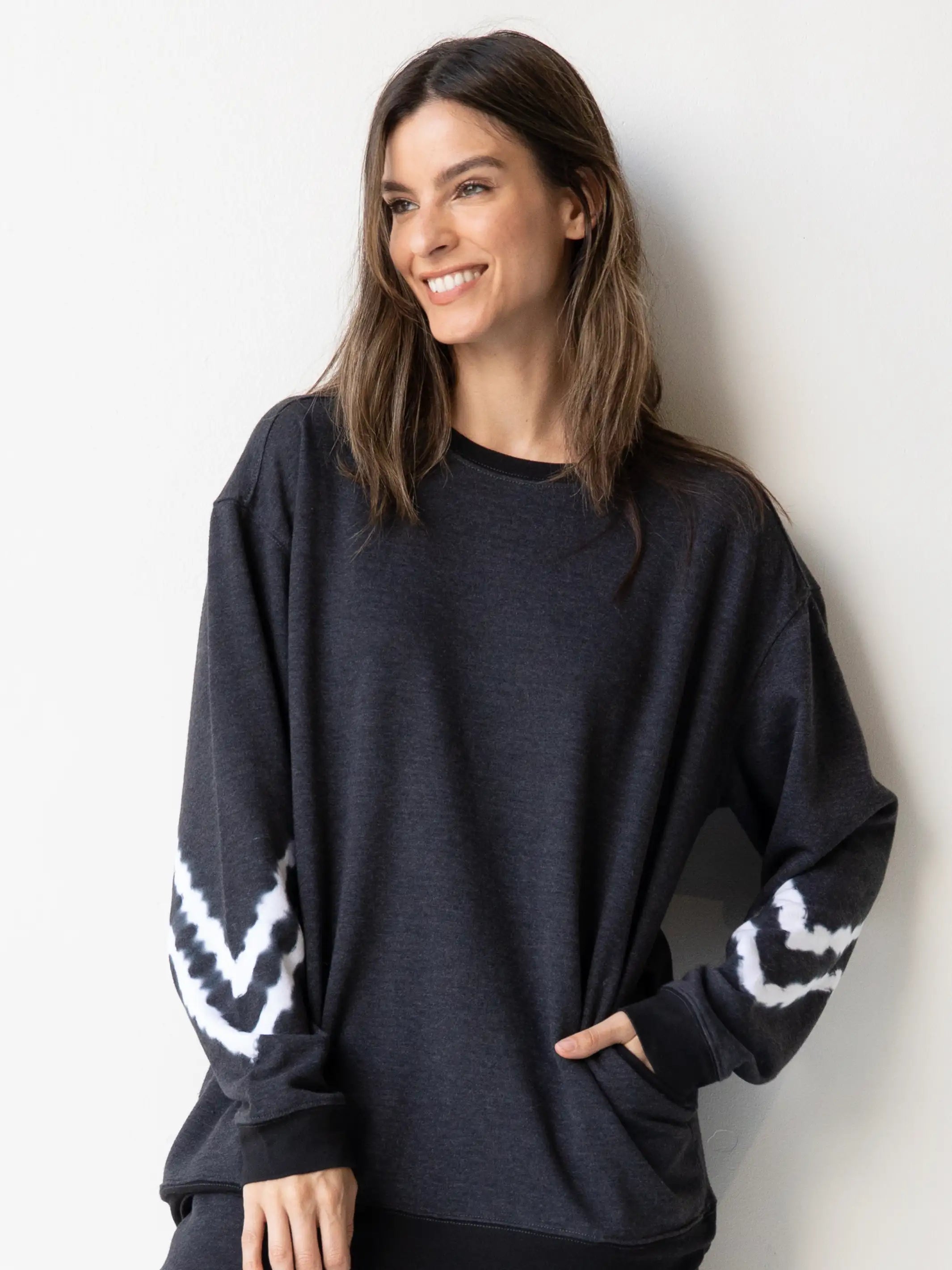 Comfy Crew Neck Sweatshirt - Charcoal Chevron