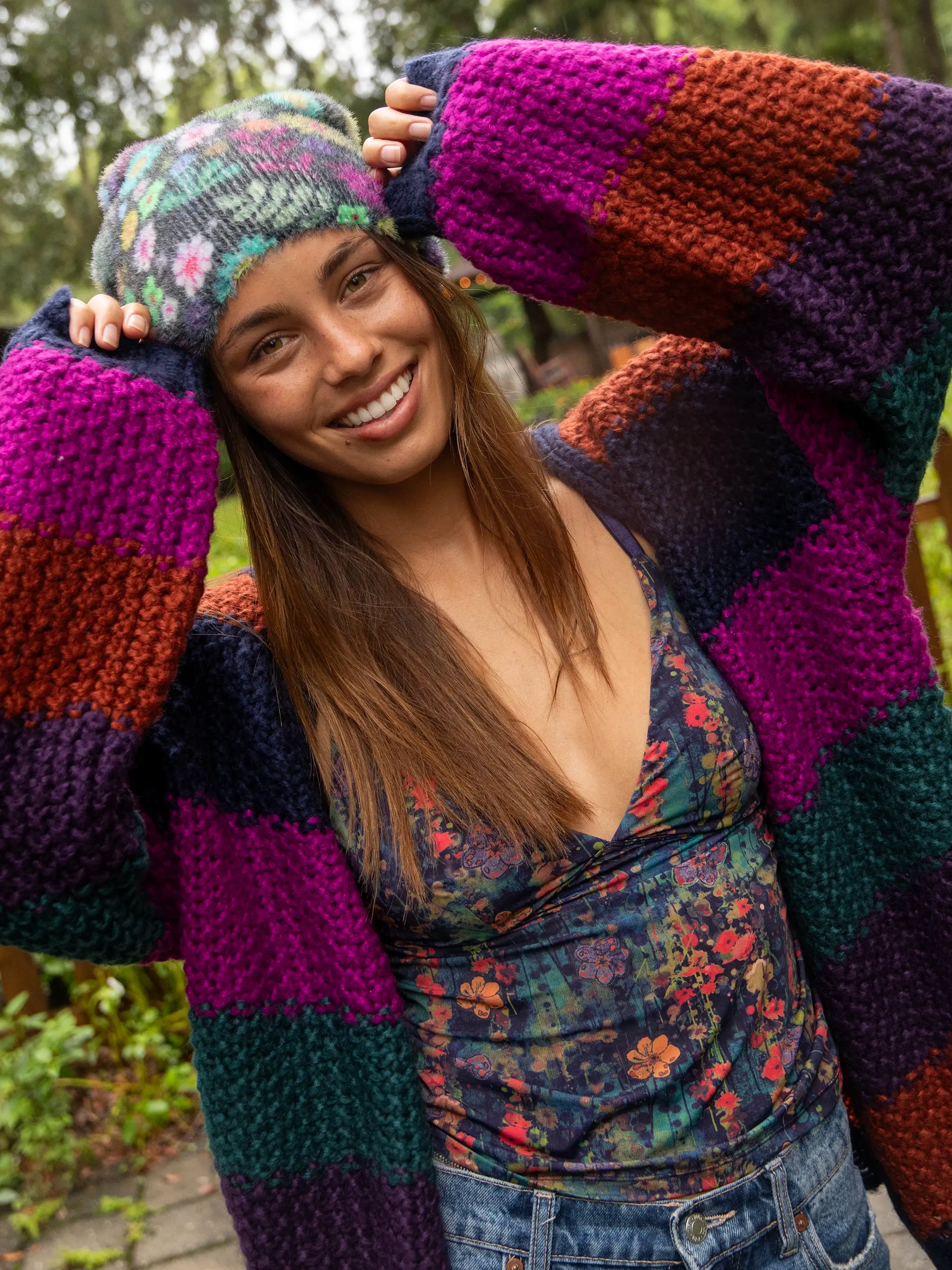 Deep V-Neck Cami - Watercolor Indigo Floral