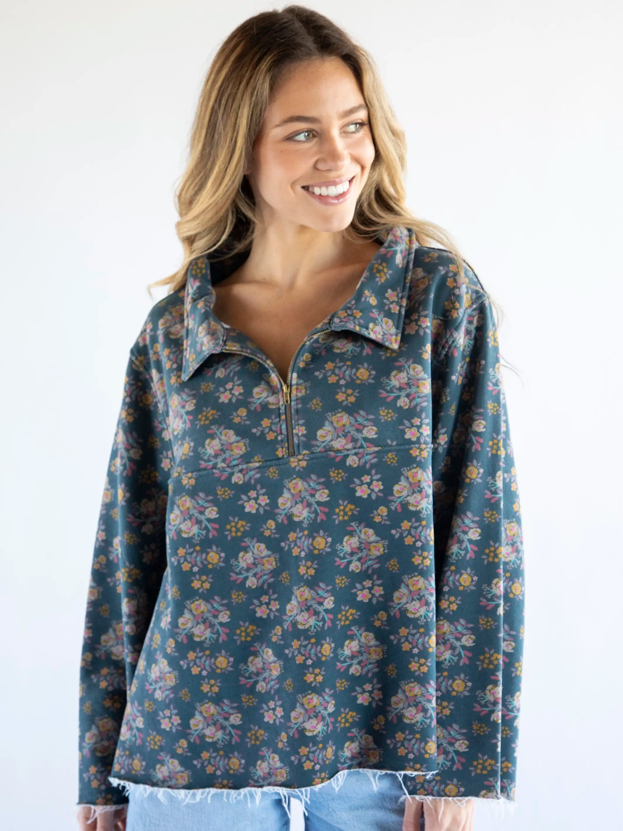 Easy Does It Sweatshirt - Slate Floral Blooms