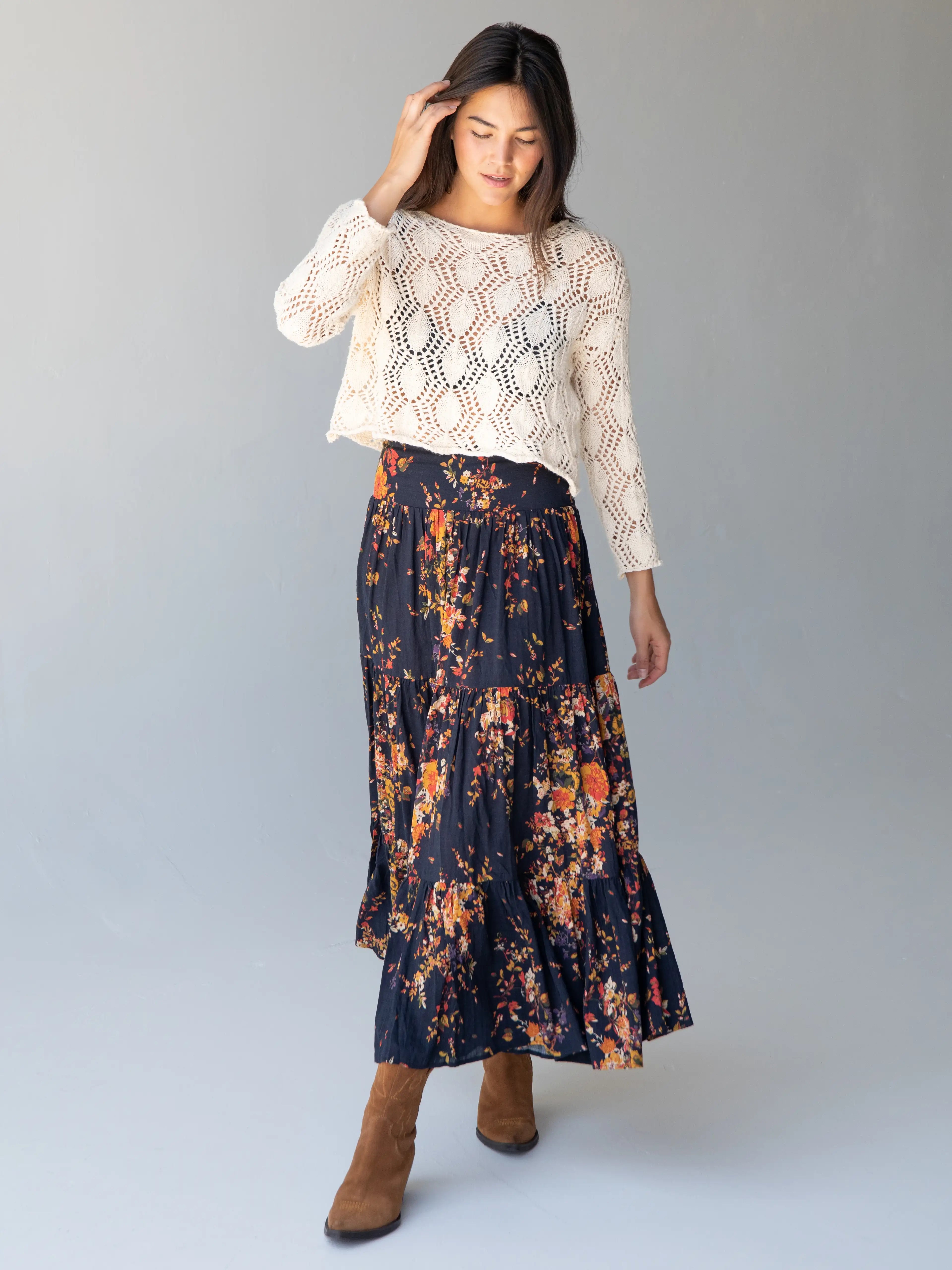 Hanna Convertible Maxi Skirt - Navy Red Bouquets