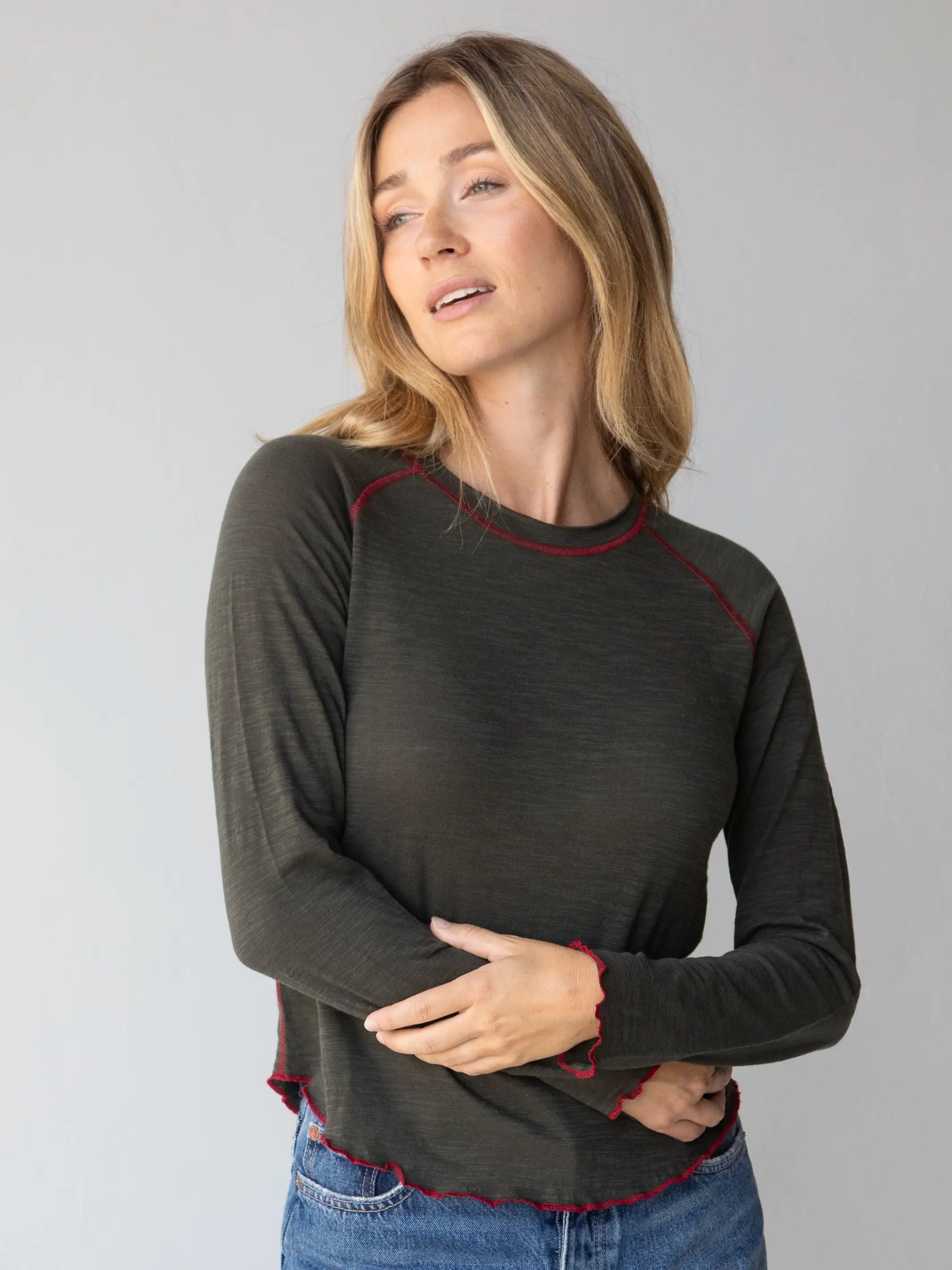 Lily Cotton Long Sleeve Tee Shirt - Charcoal