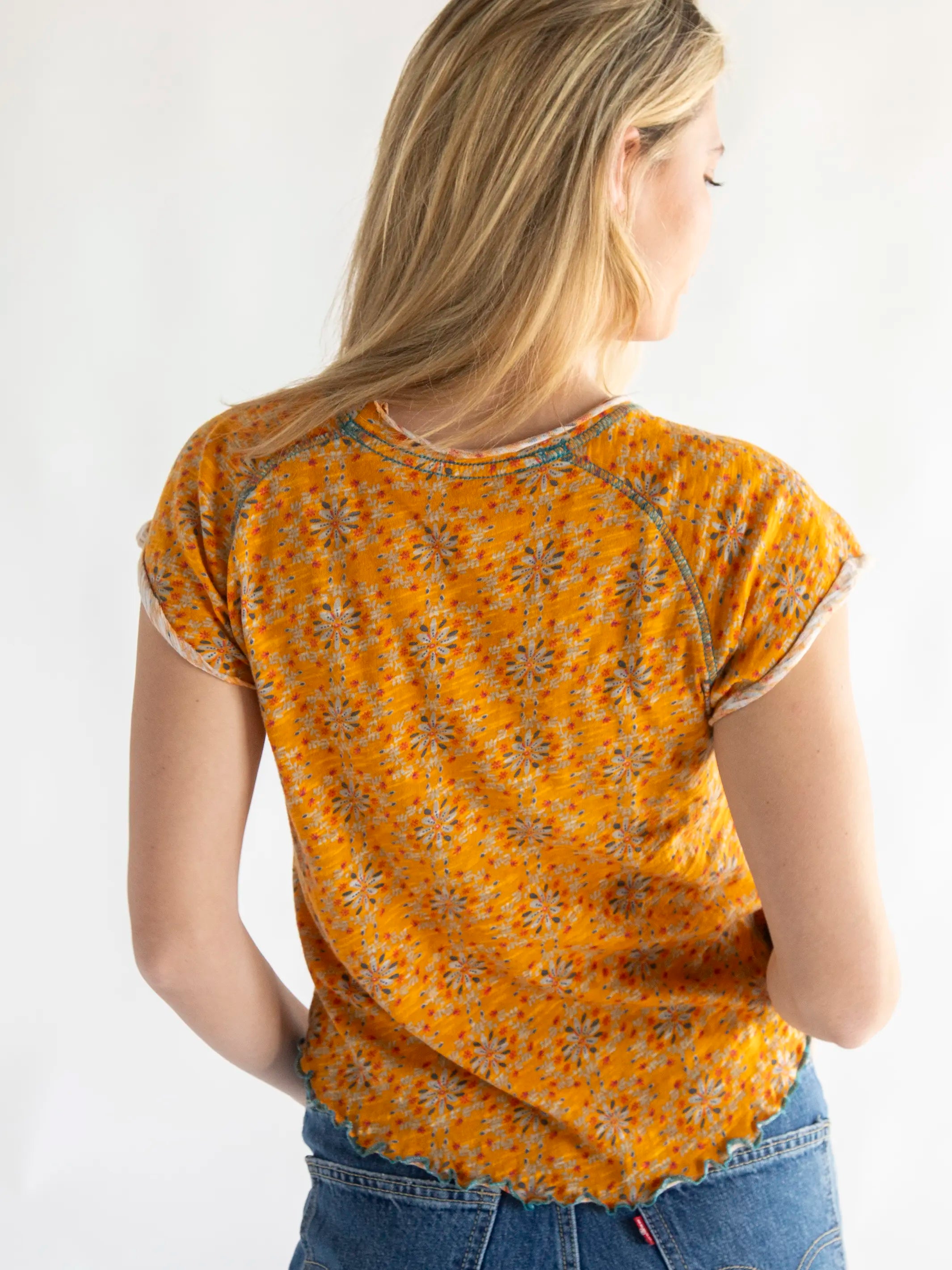 Lily Cotton Short Sleeve Tee Shirt - Yellow Medallion