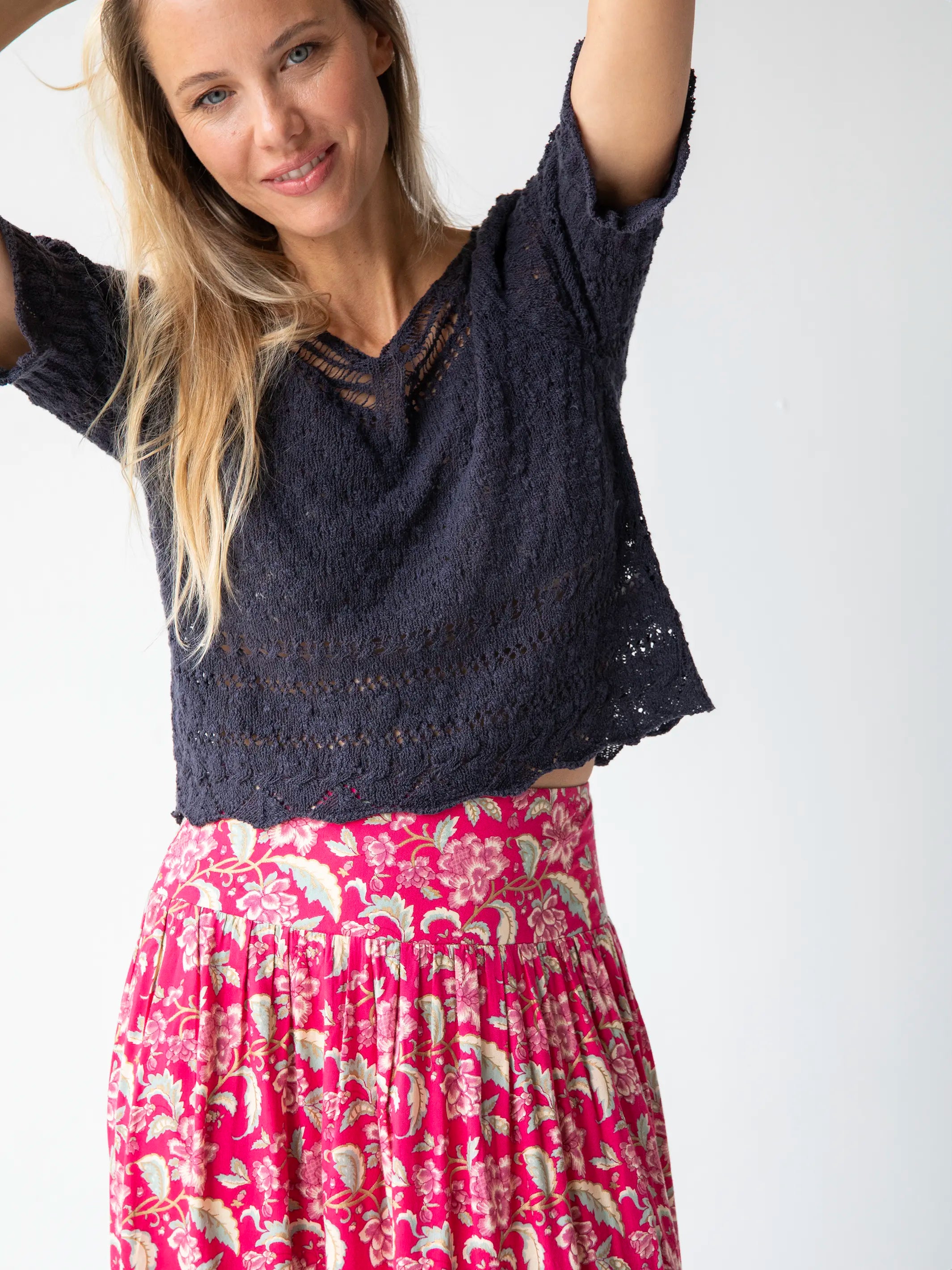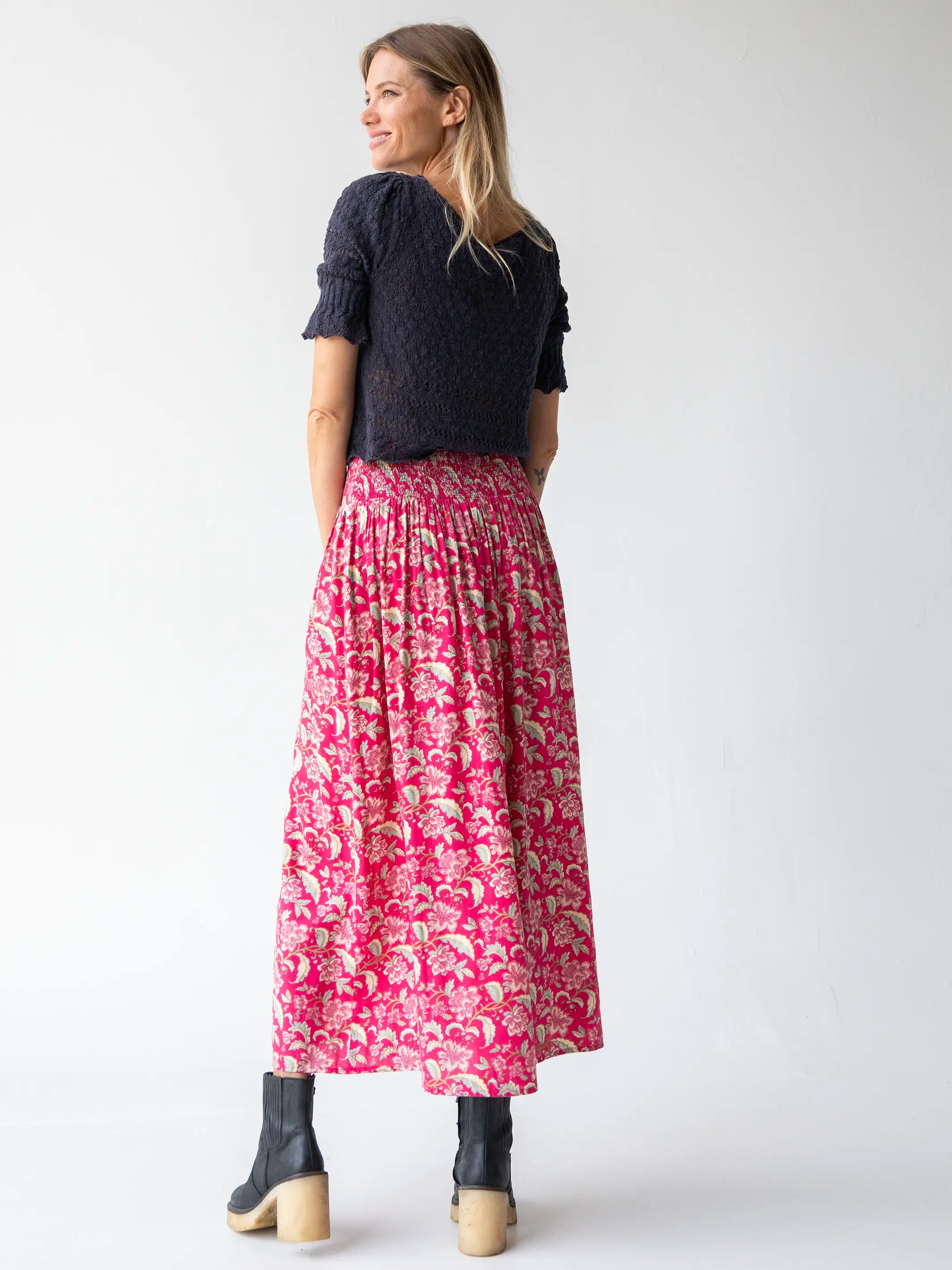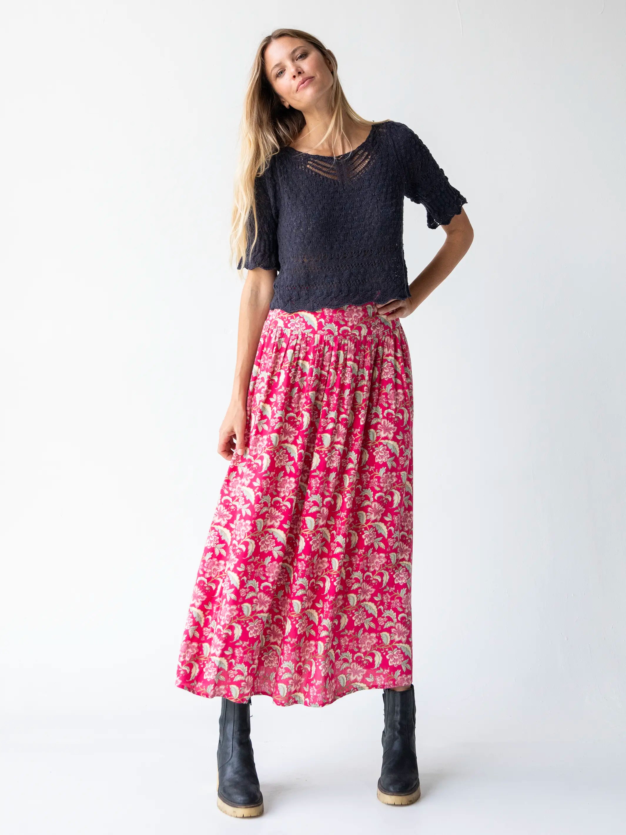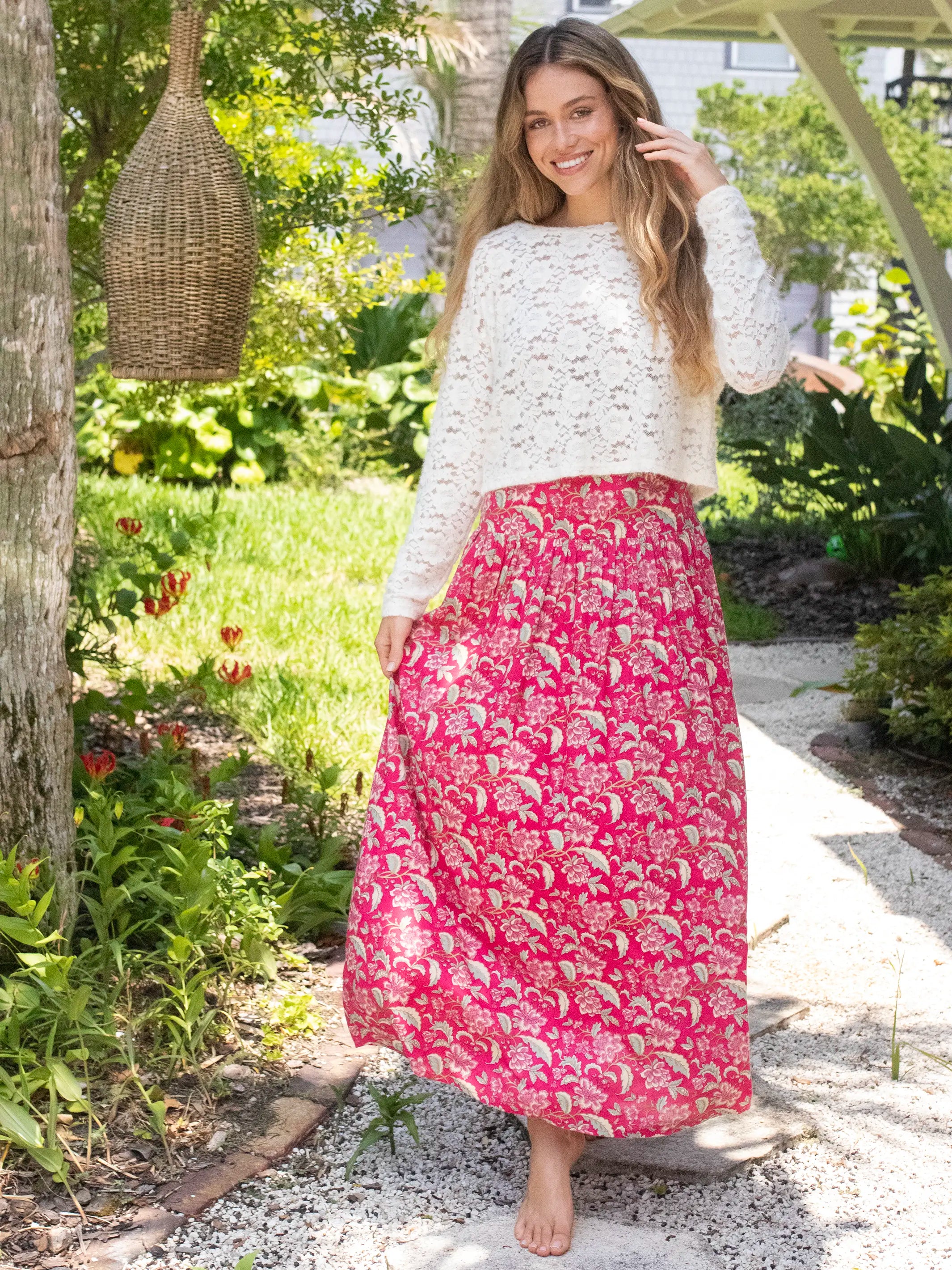 Lisa Maxi Skirt - Fuchsia Light Pink Floral