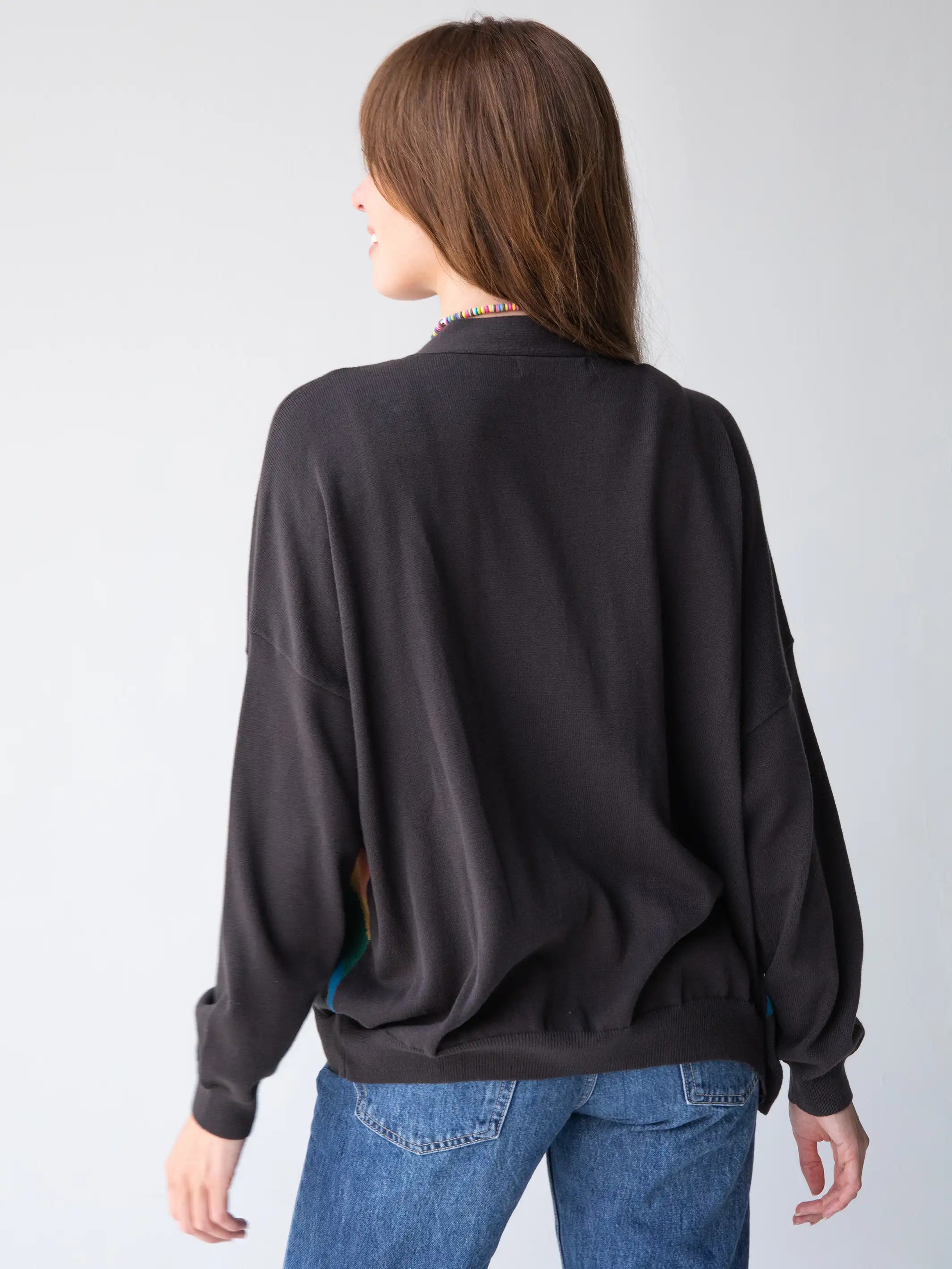 Live Happy Cotton Cardigan Sweater - Charcoal Rainbow