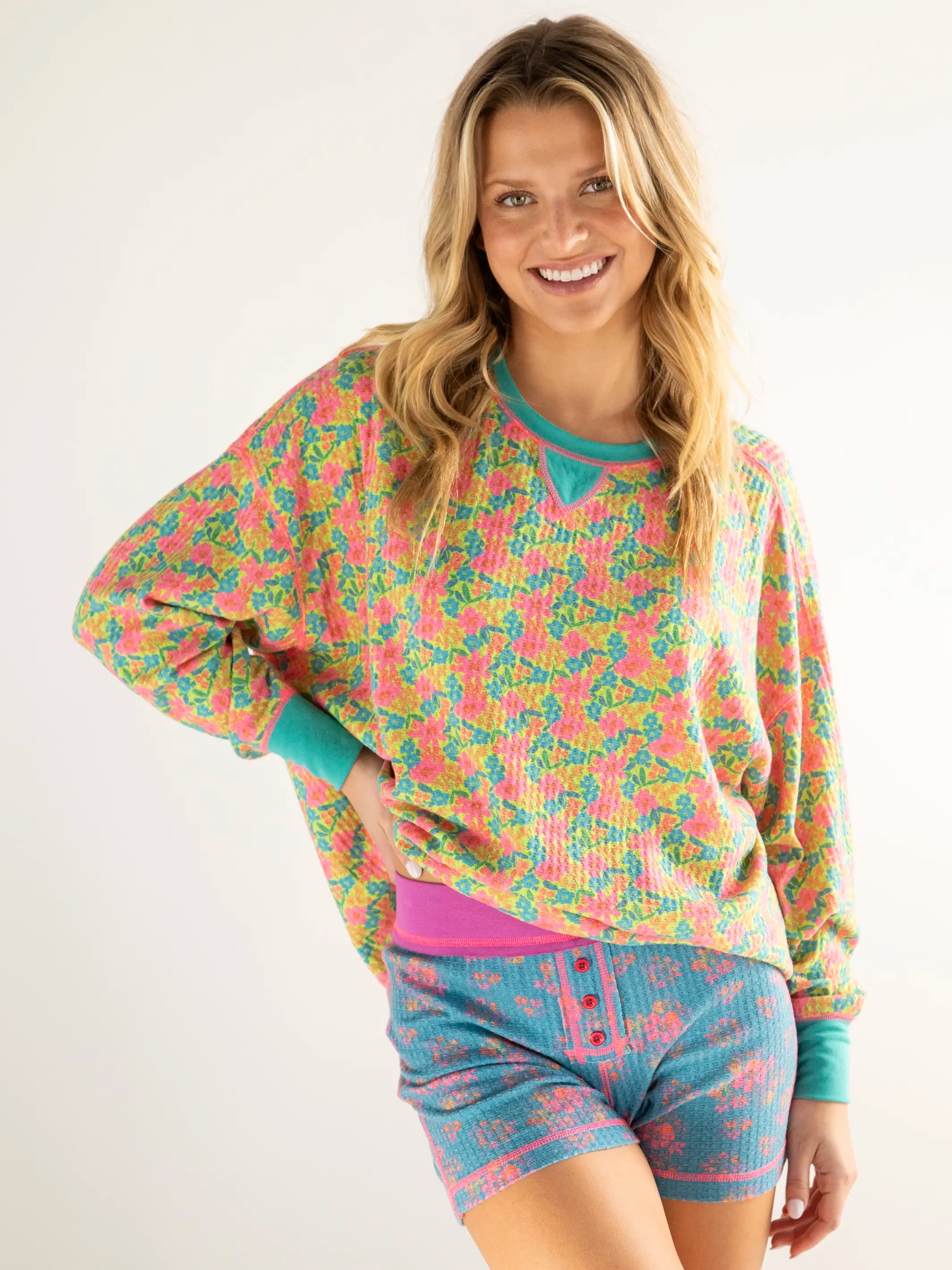 Mix & Match Waffle Boy Shorts - Turquoise Pink Mustard Floral