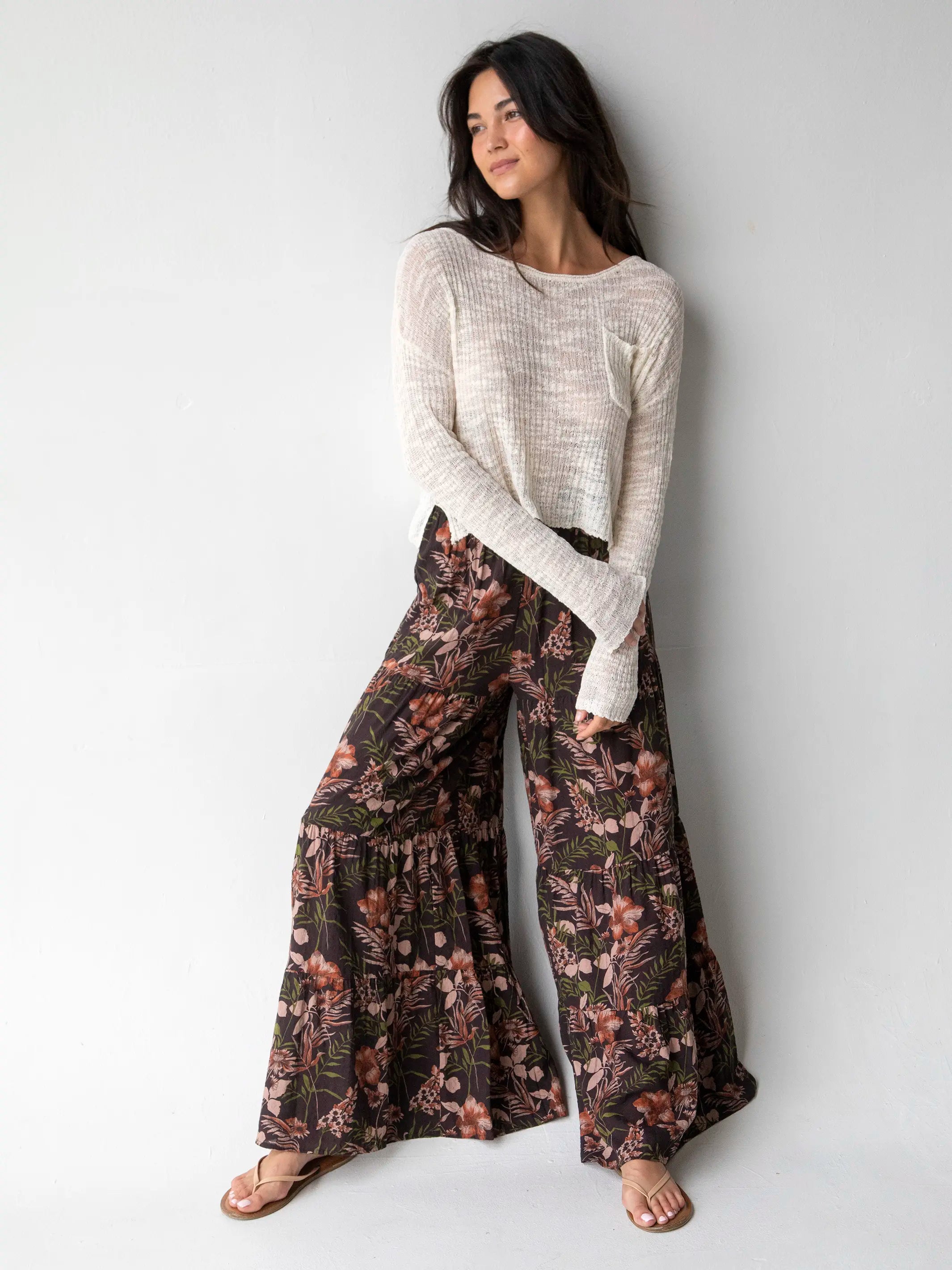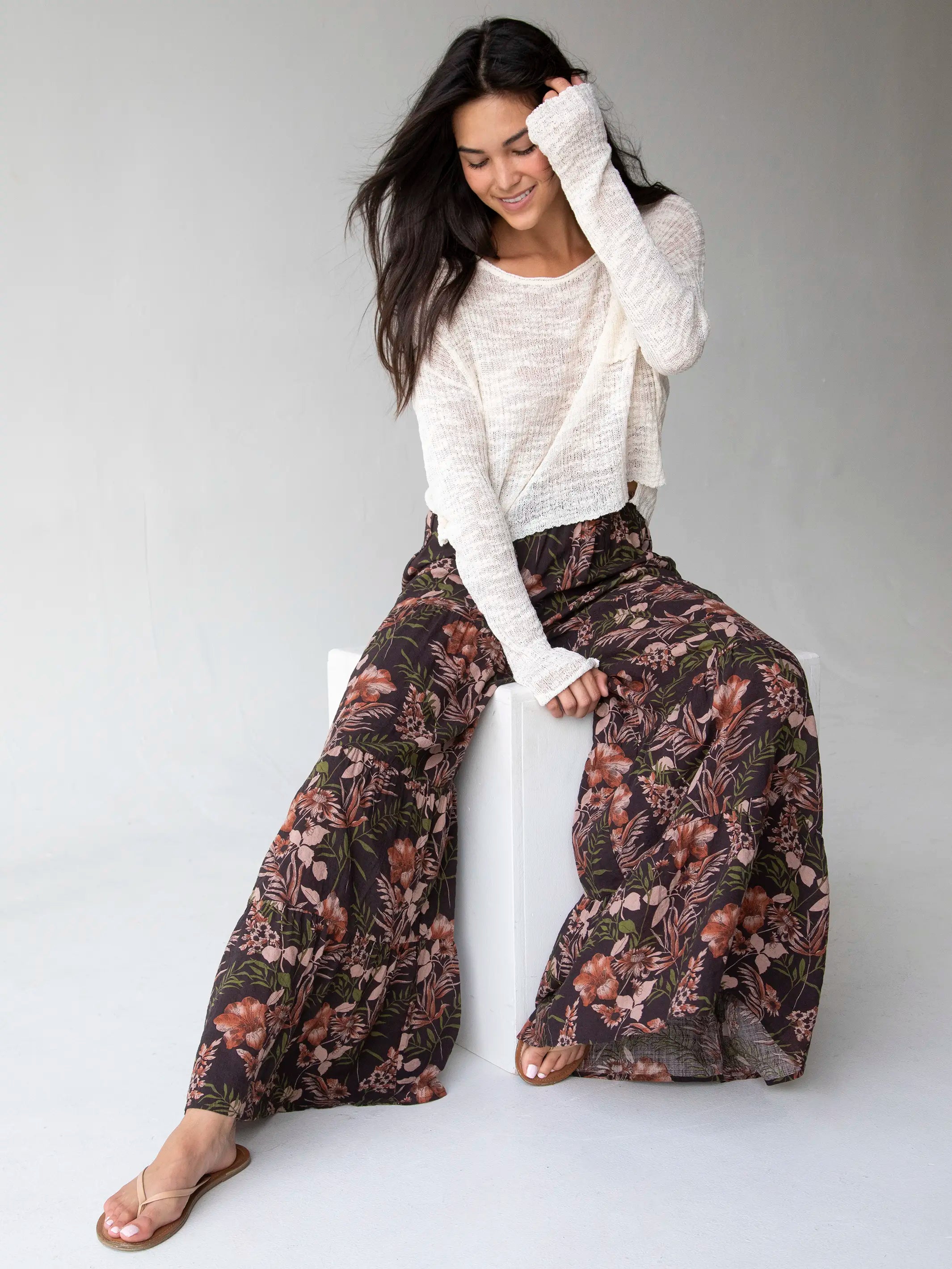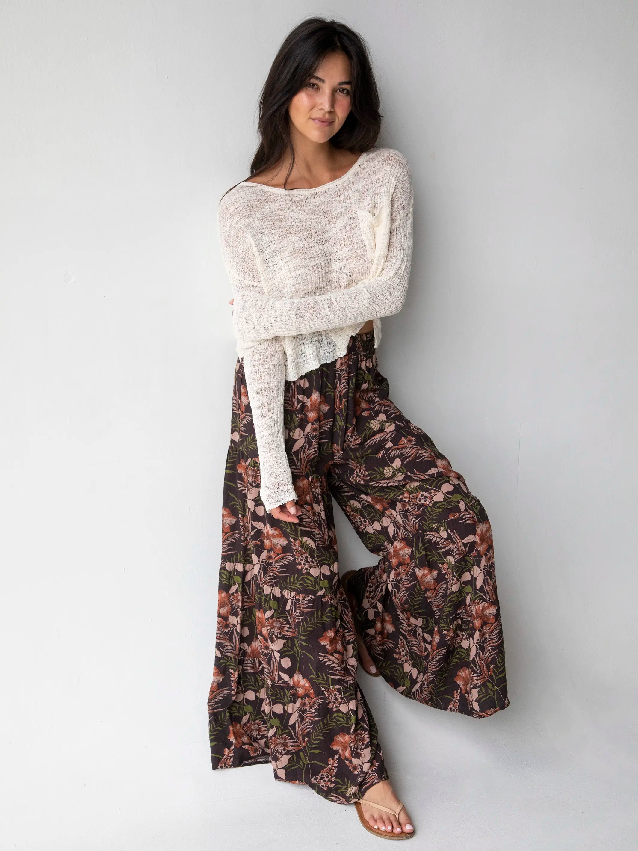 Patti Palazzo Pant - Brown Orange Hibiscus
