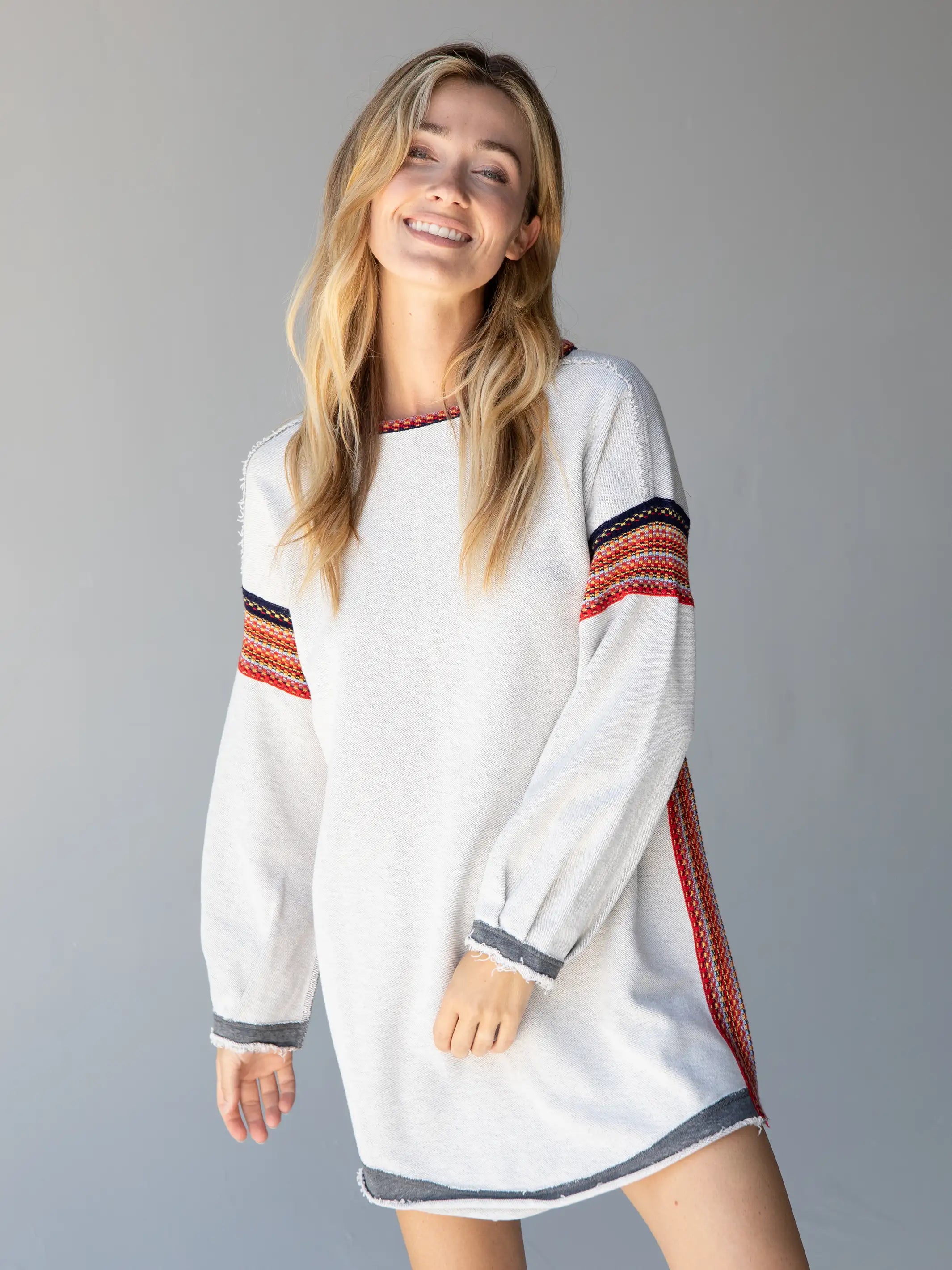Reversible Trim Sweatshirt Dress - Heather Grey