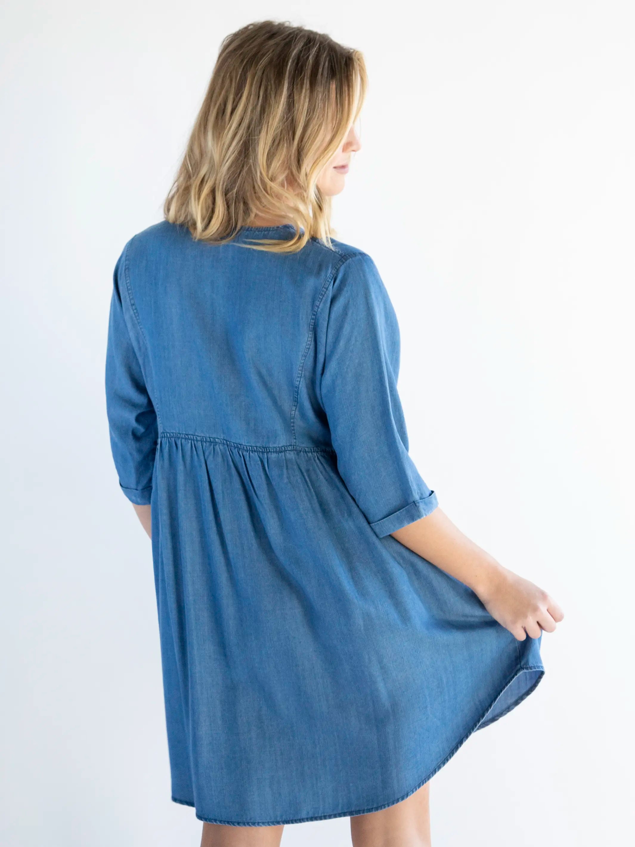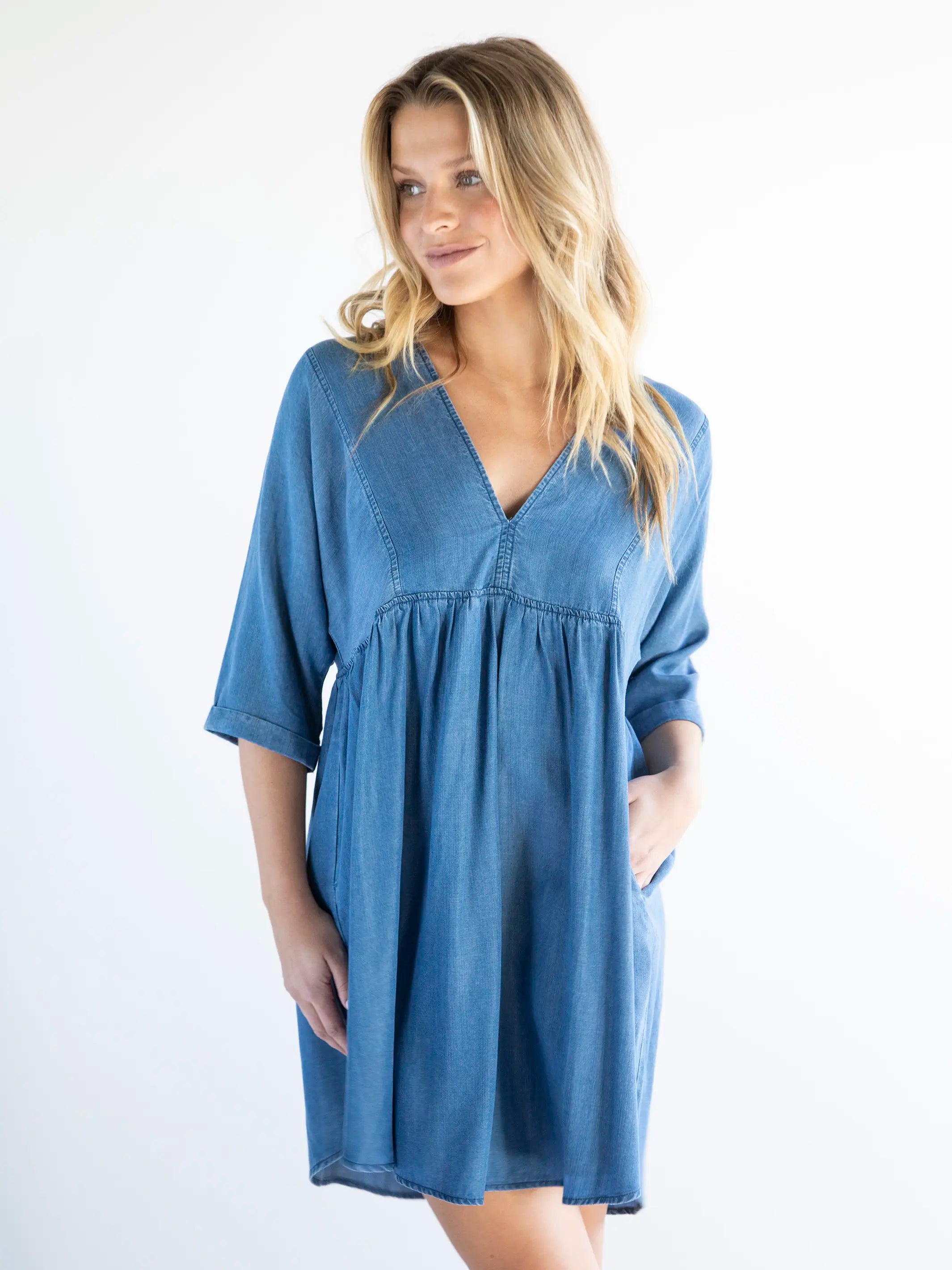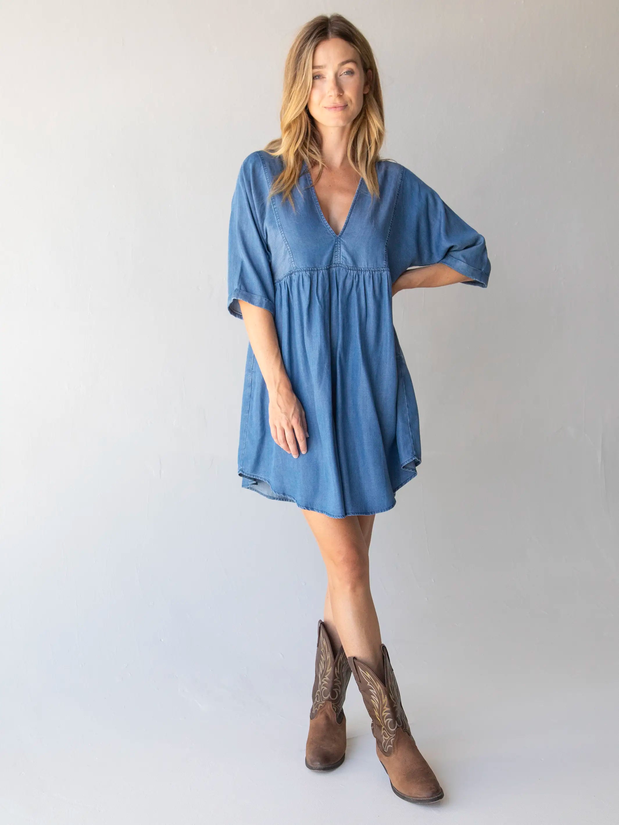 Stella V-Neck Mini Dress - Denim Blue