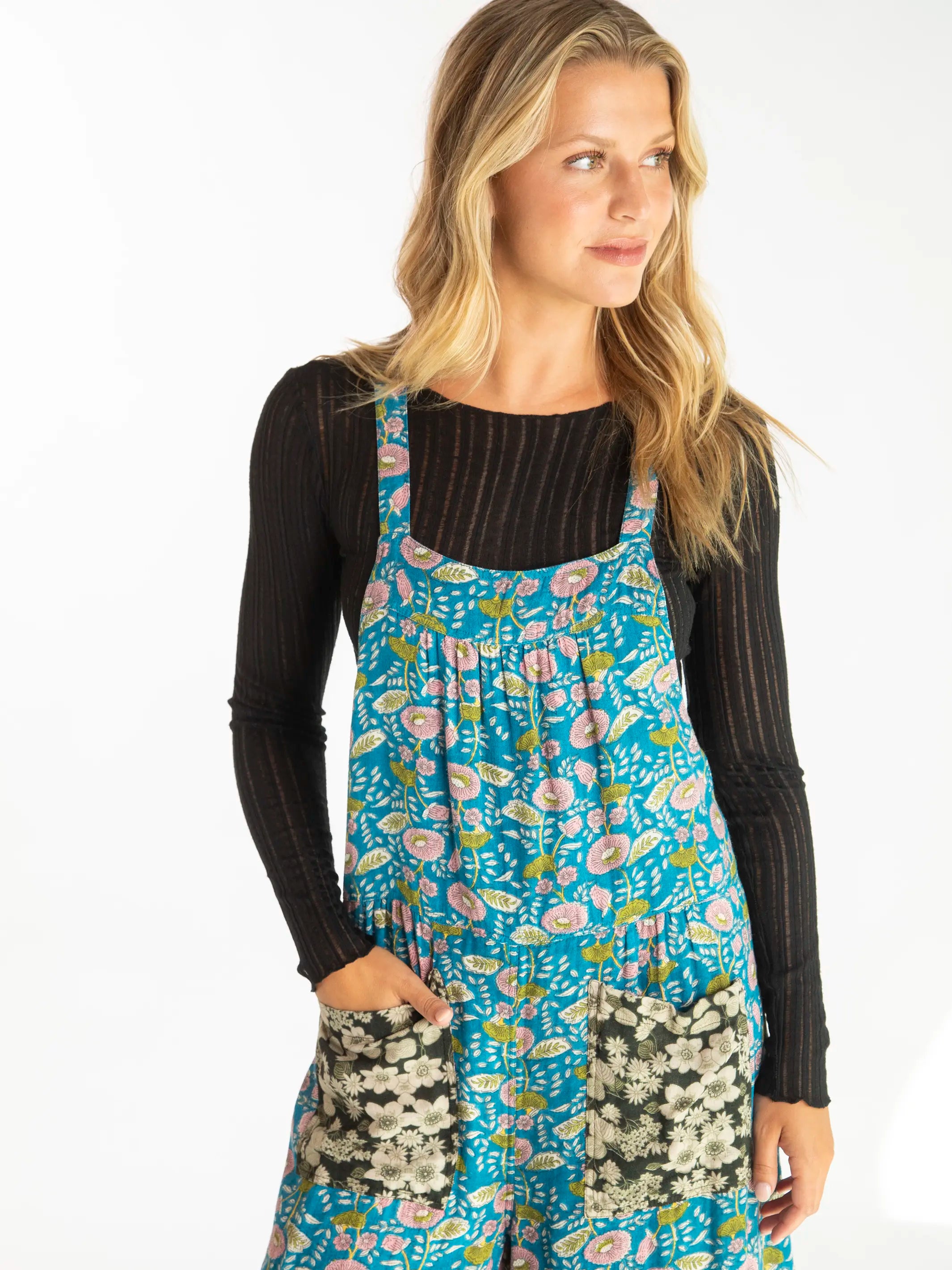 Dakota Tie Overall - Black Blue Mix Floral