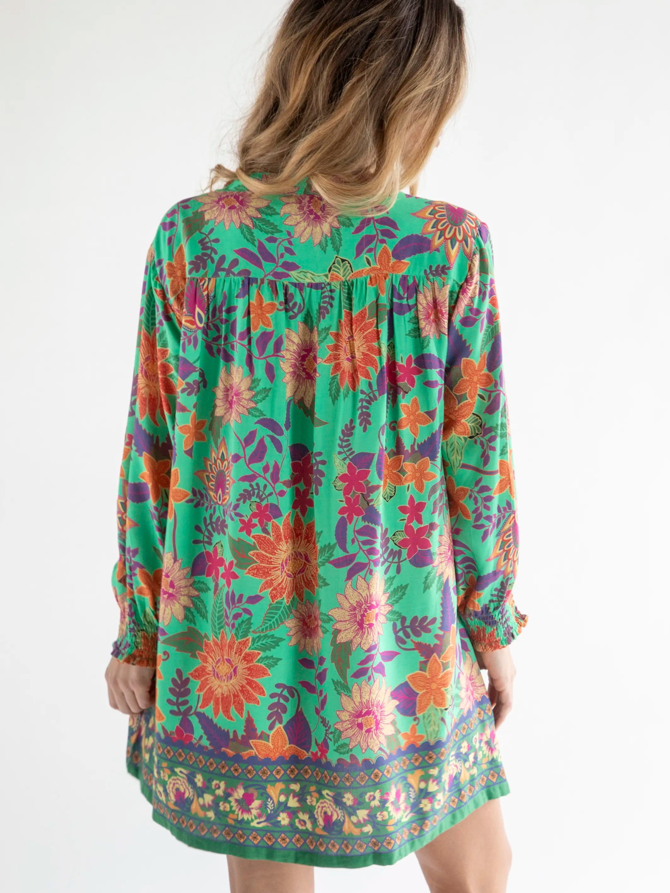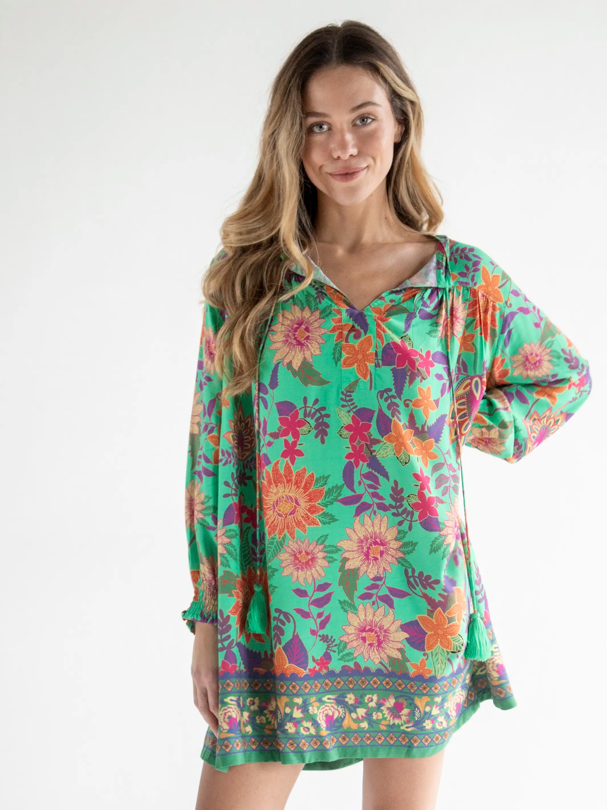 Dara V-Neck Tunic Dress - Bright Green Floral