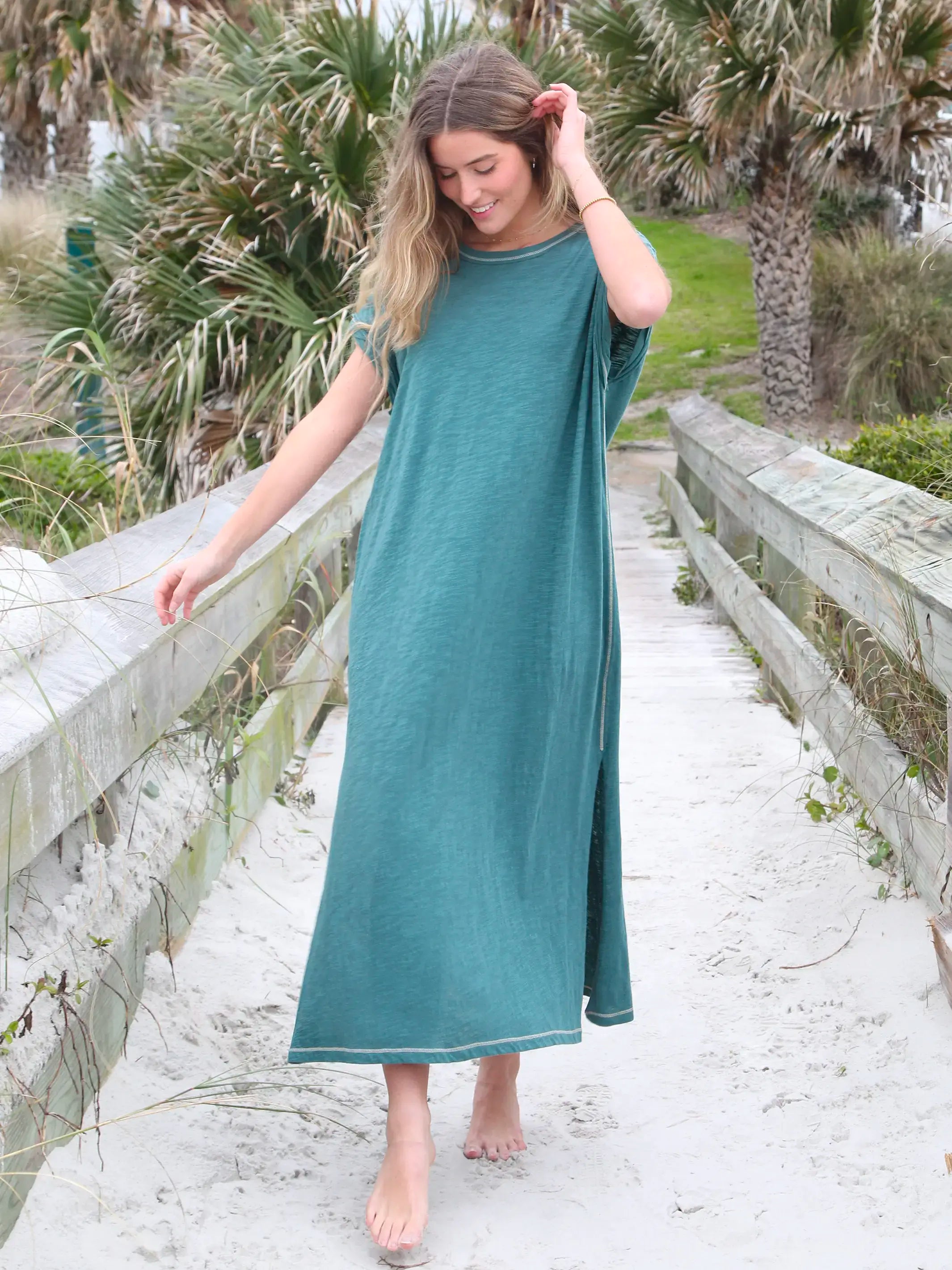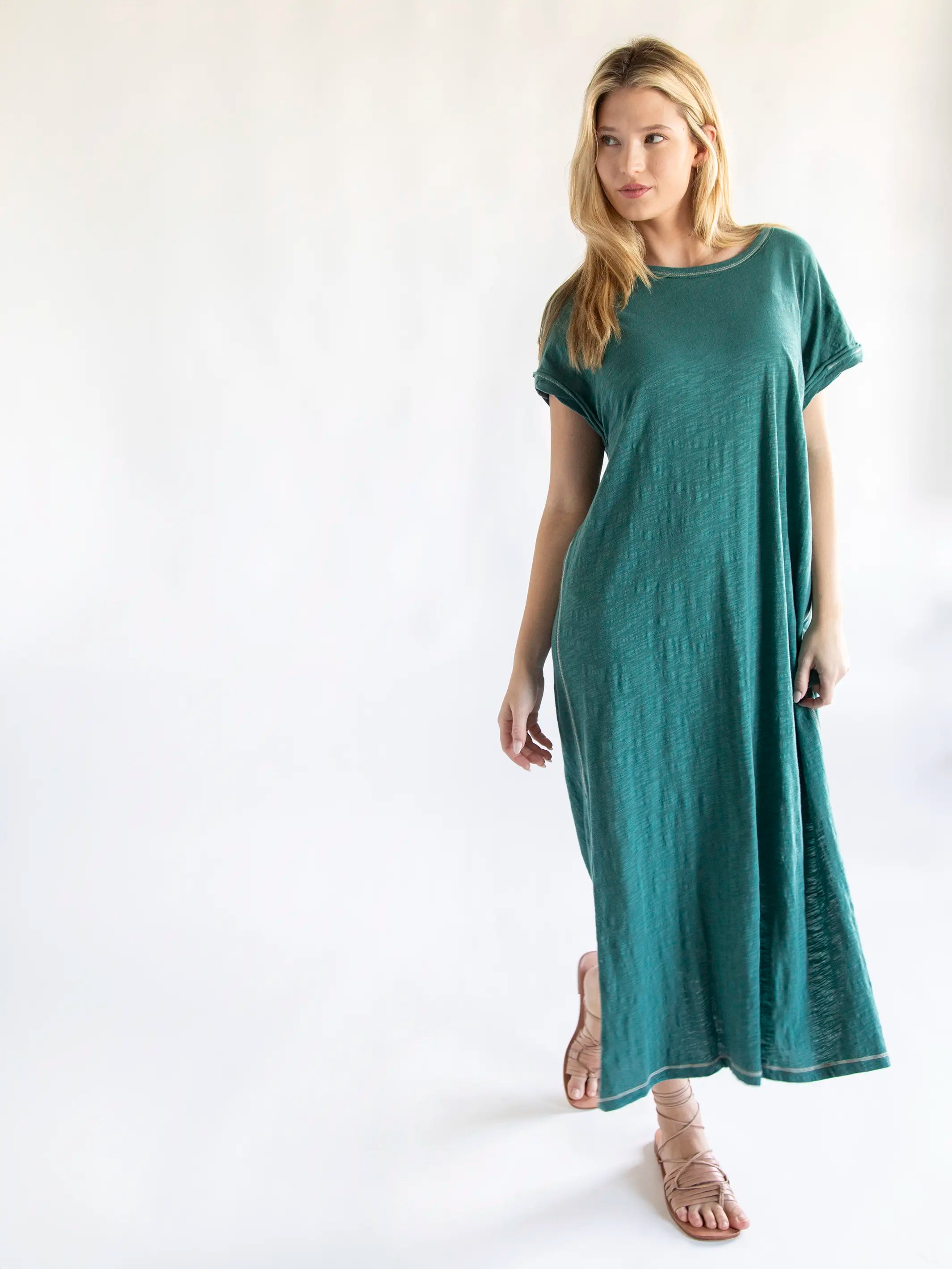 Frankie Knit Cotton Tee Midi Dress - Sea Green
