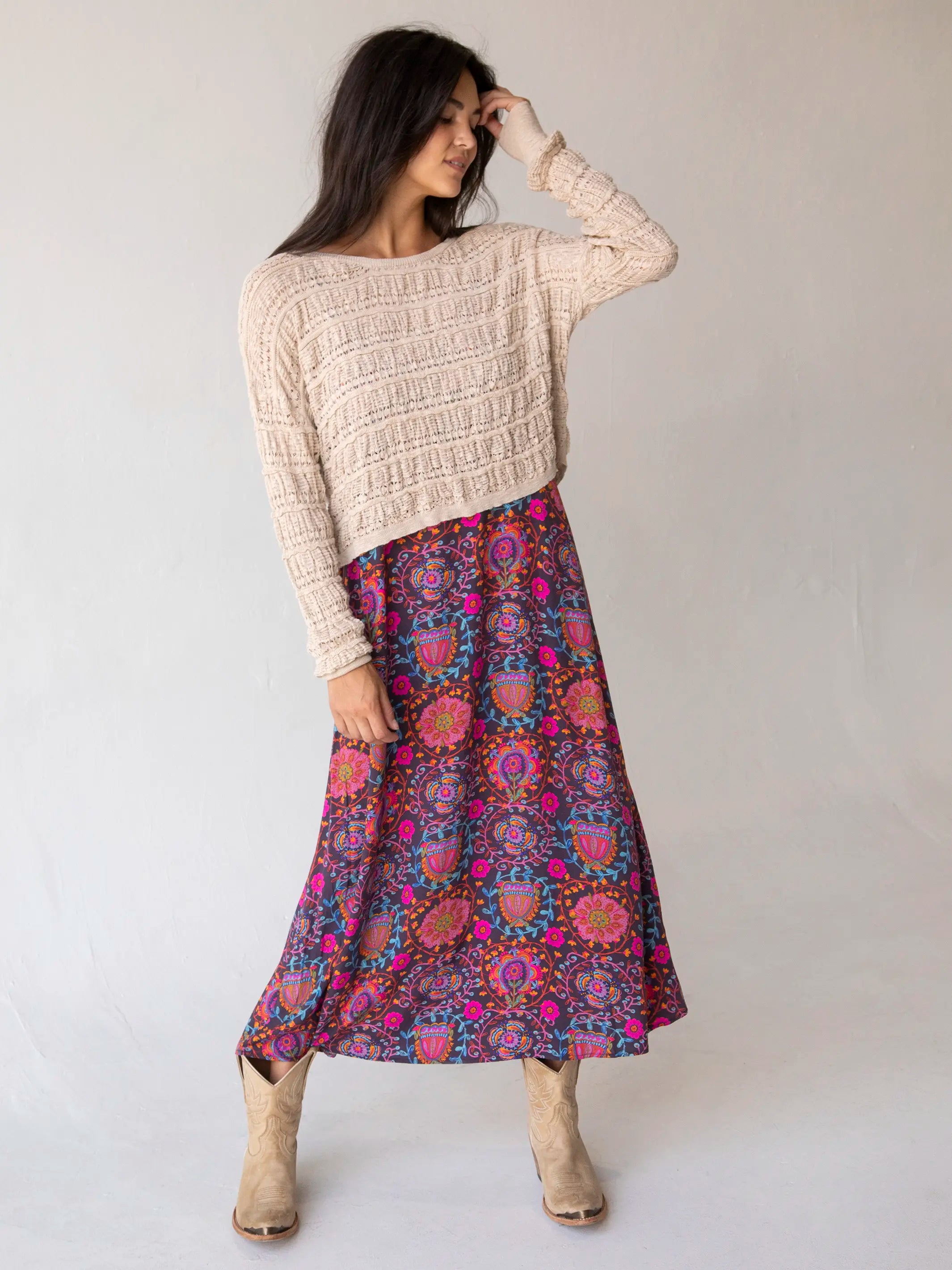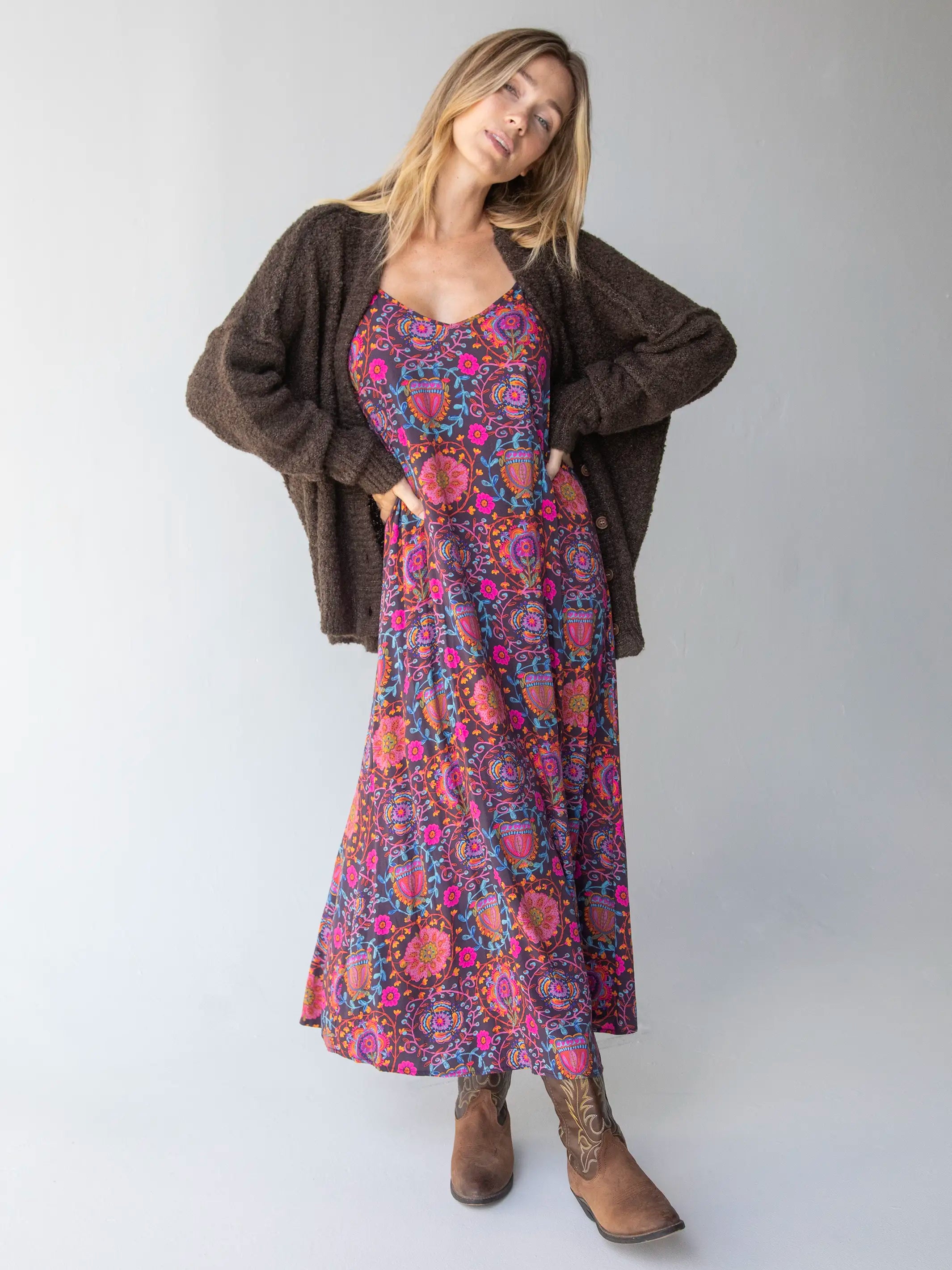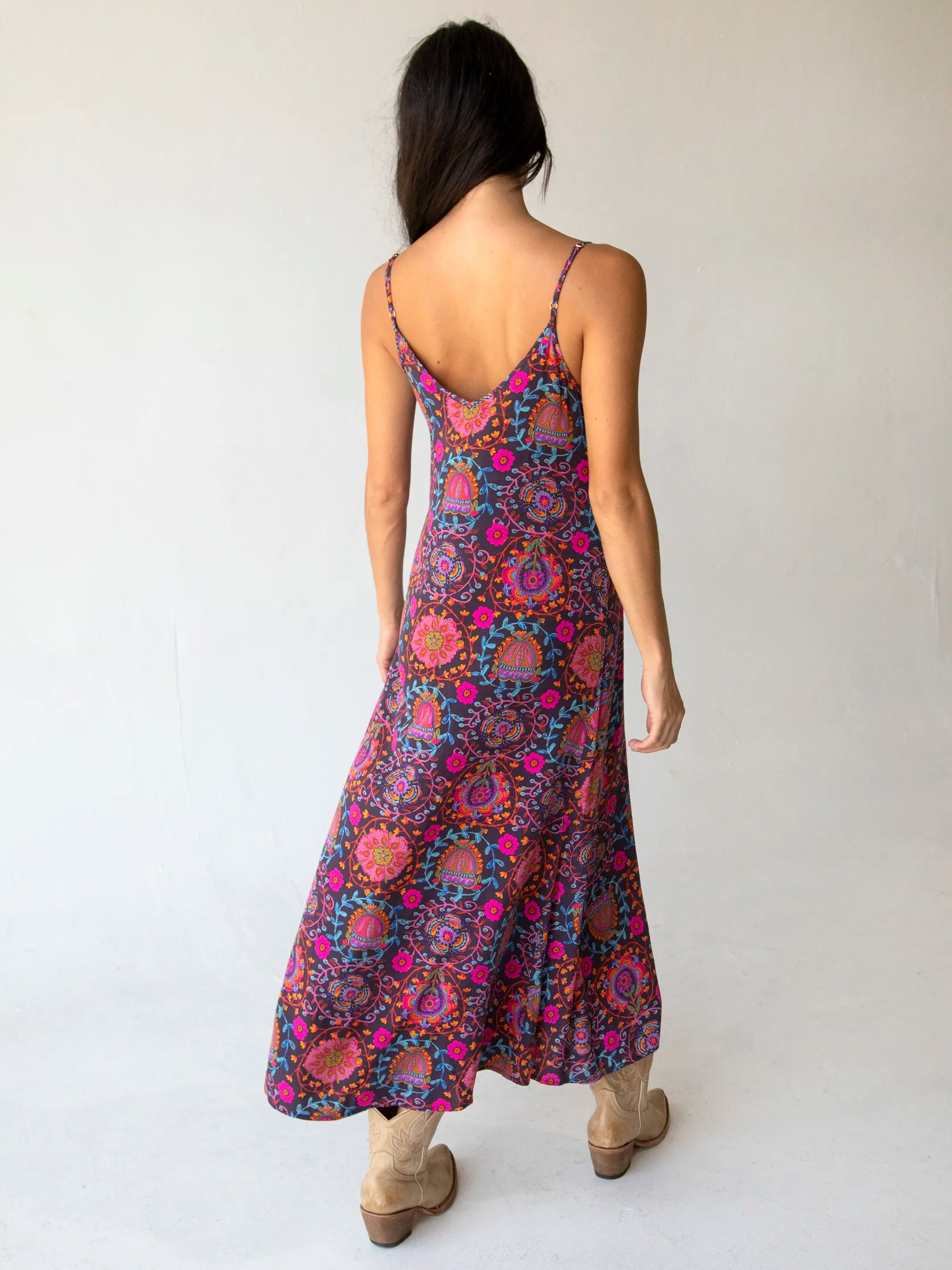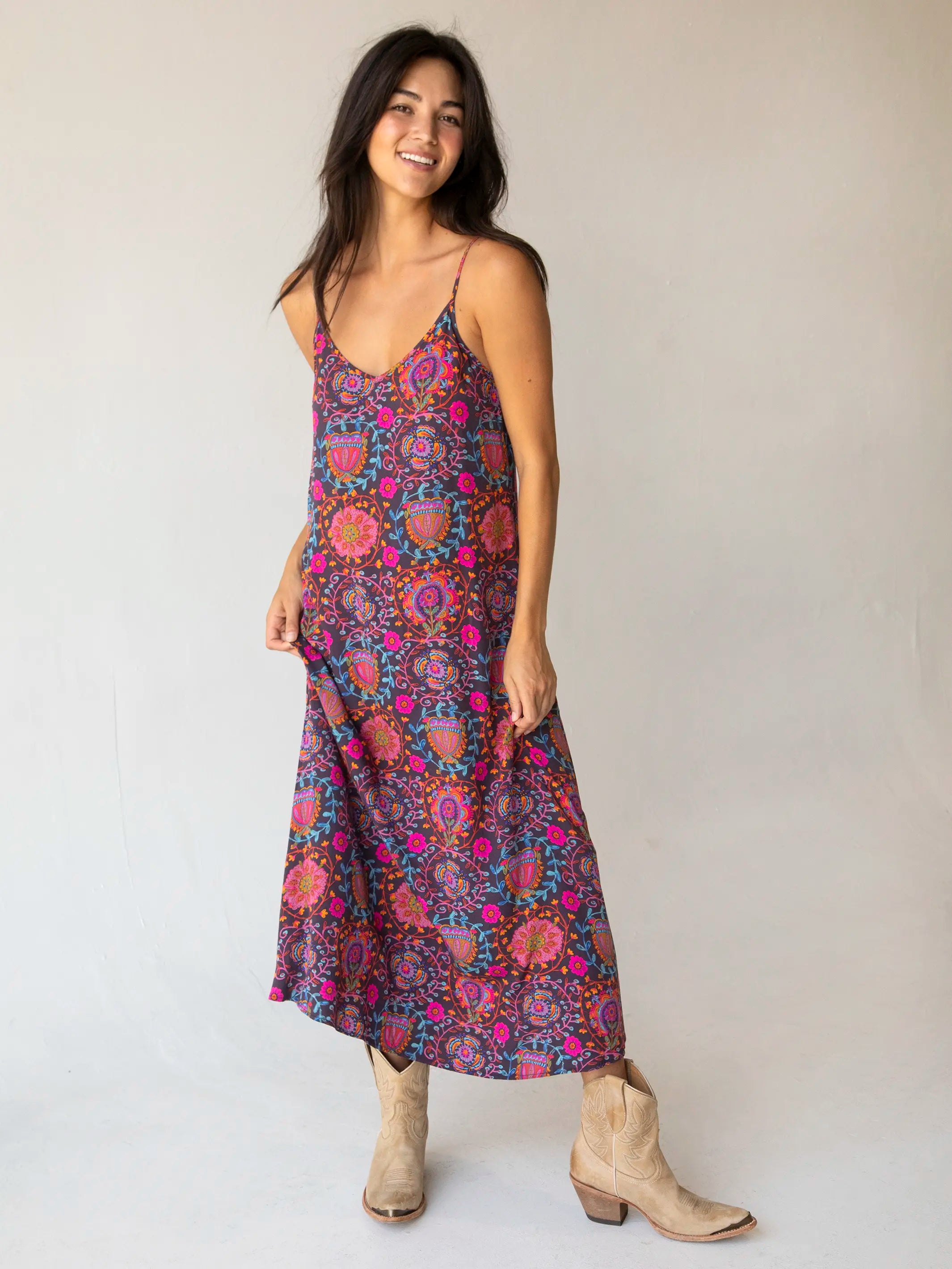Gracie Slip Maxi Dress - Black Printed Folk Circles