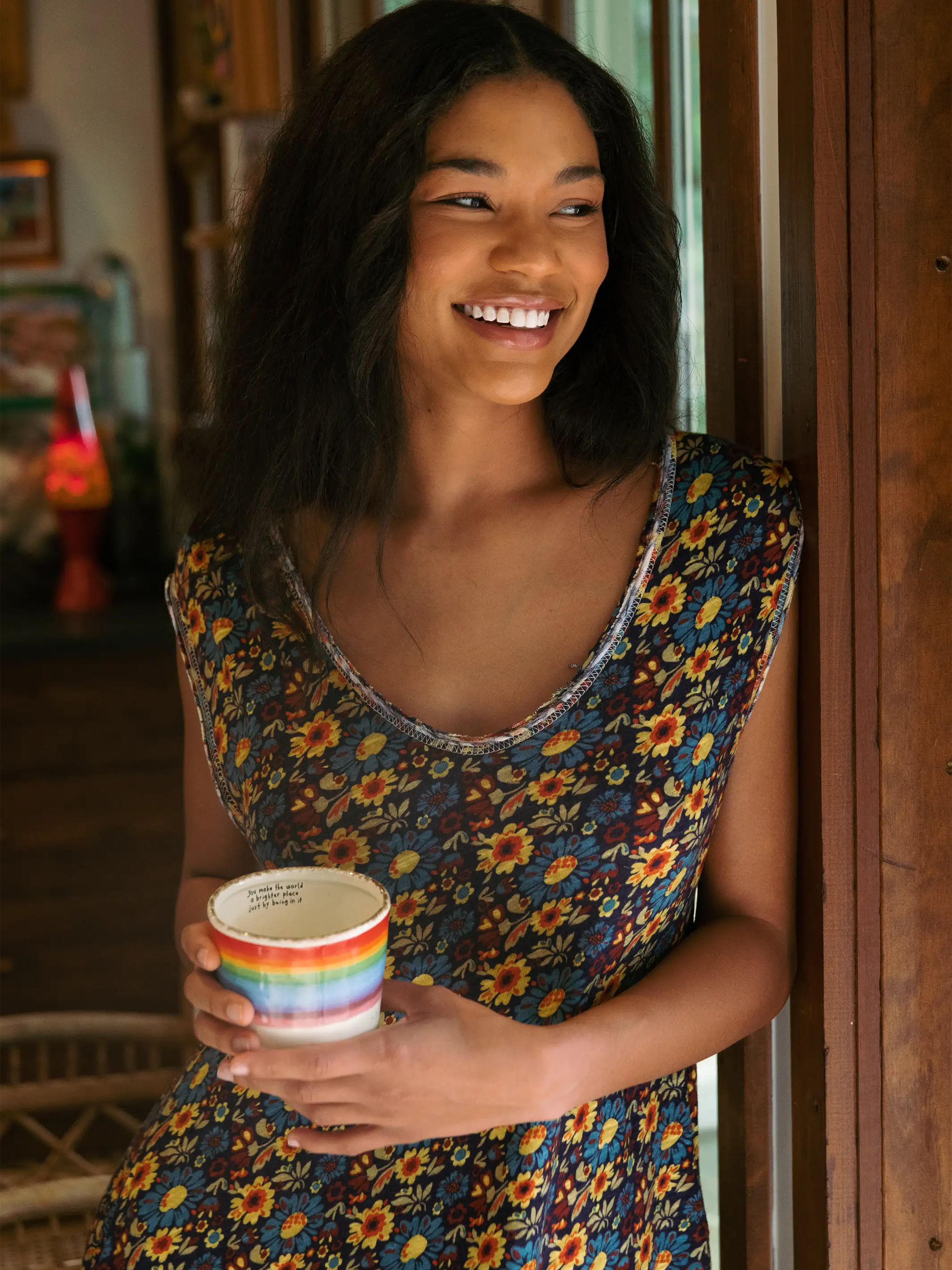 Hangout Cotton Midi Dress - Navy Olive Floral