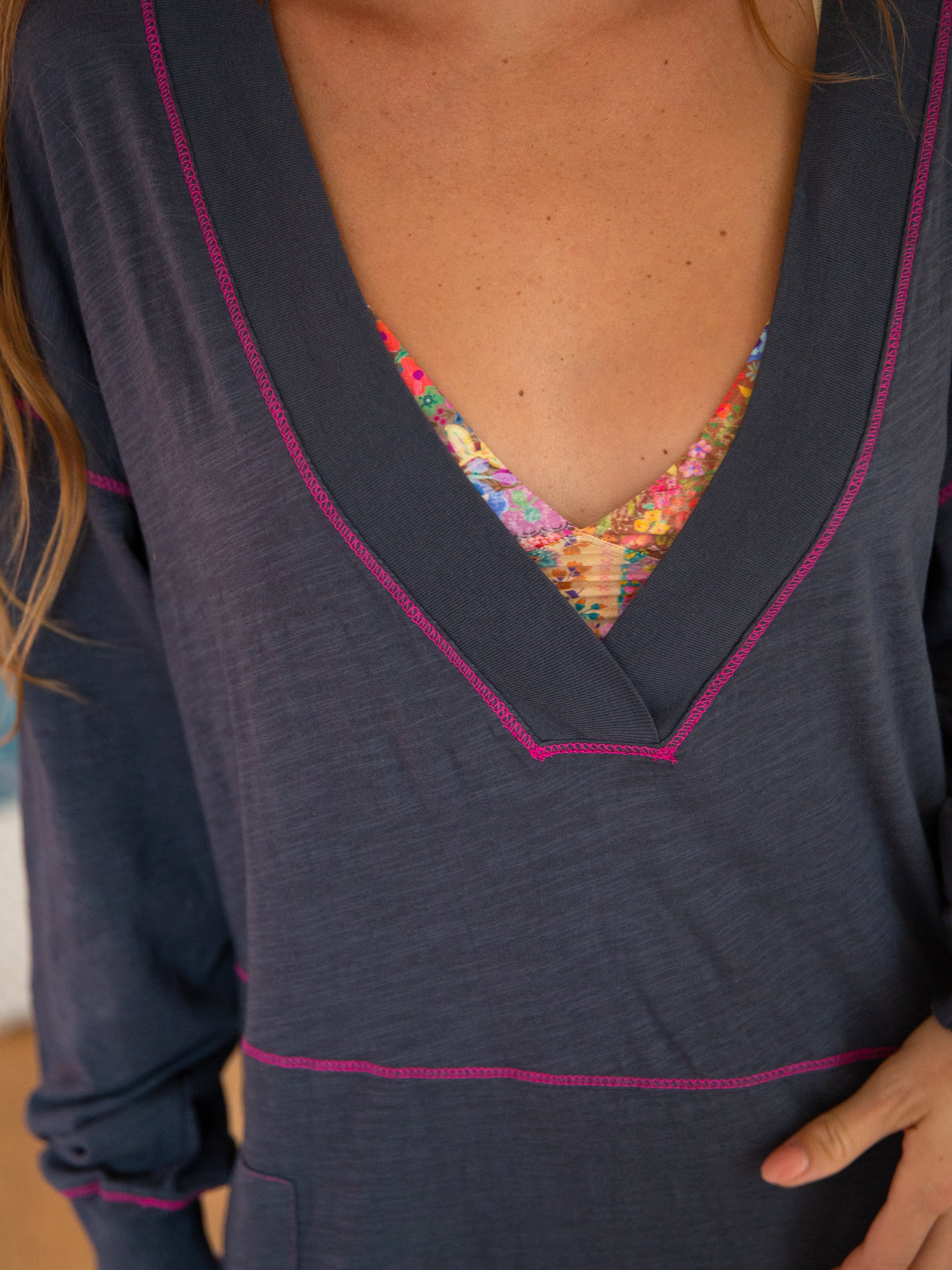 The deep v-neckline and soft, slouchy fit!