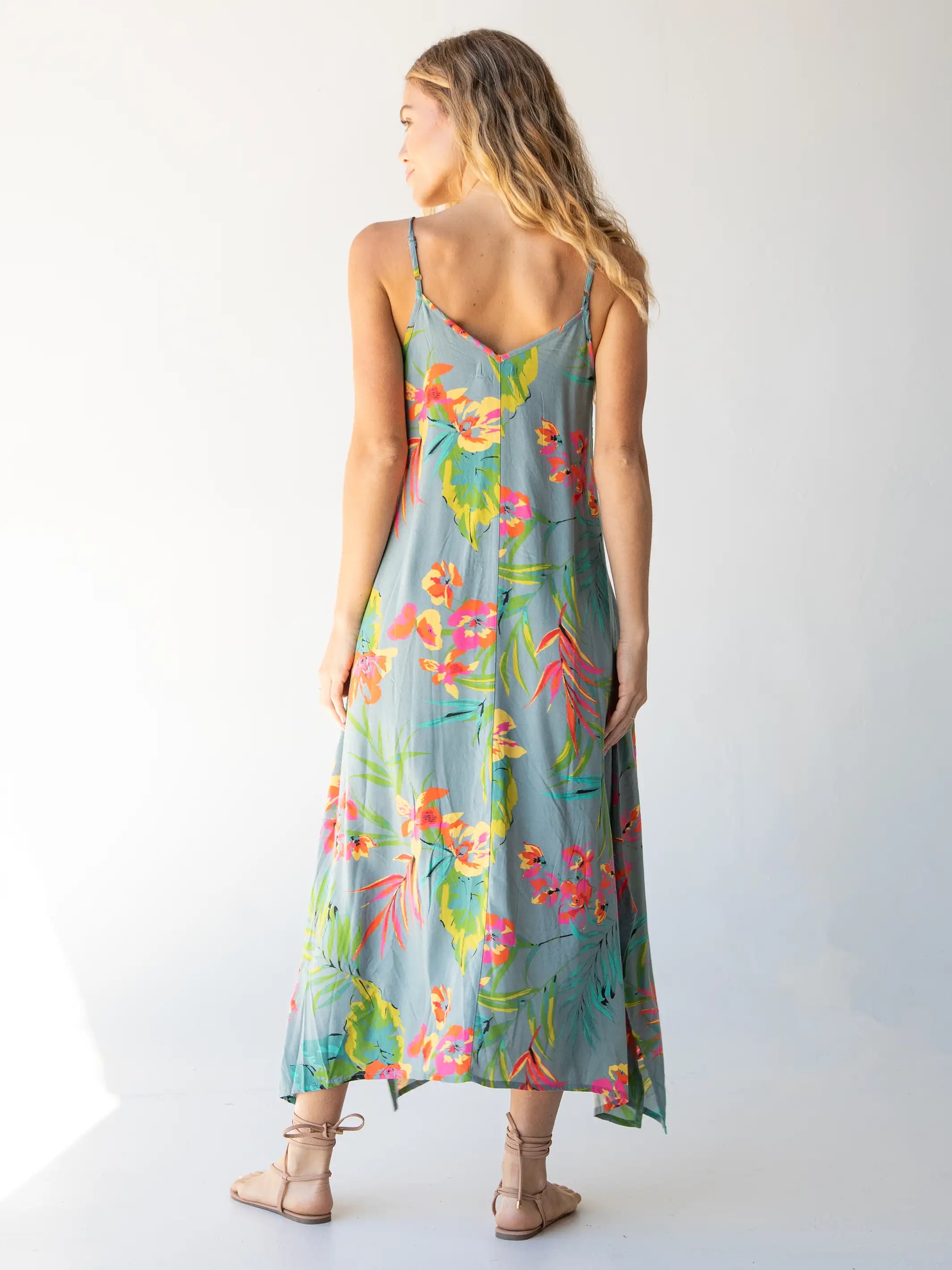 Katrina Midi Slip Dress - Light Blue Neon Floral