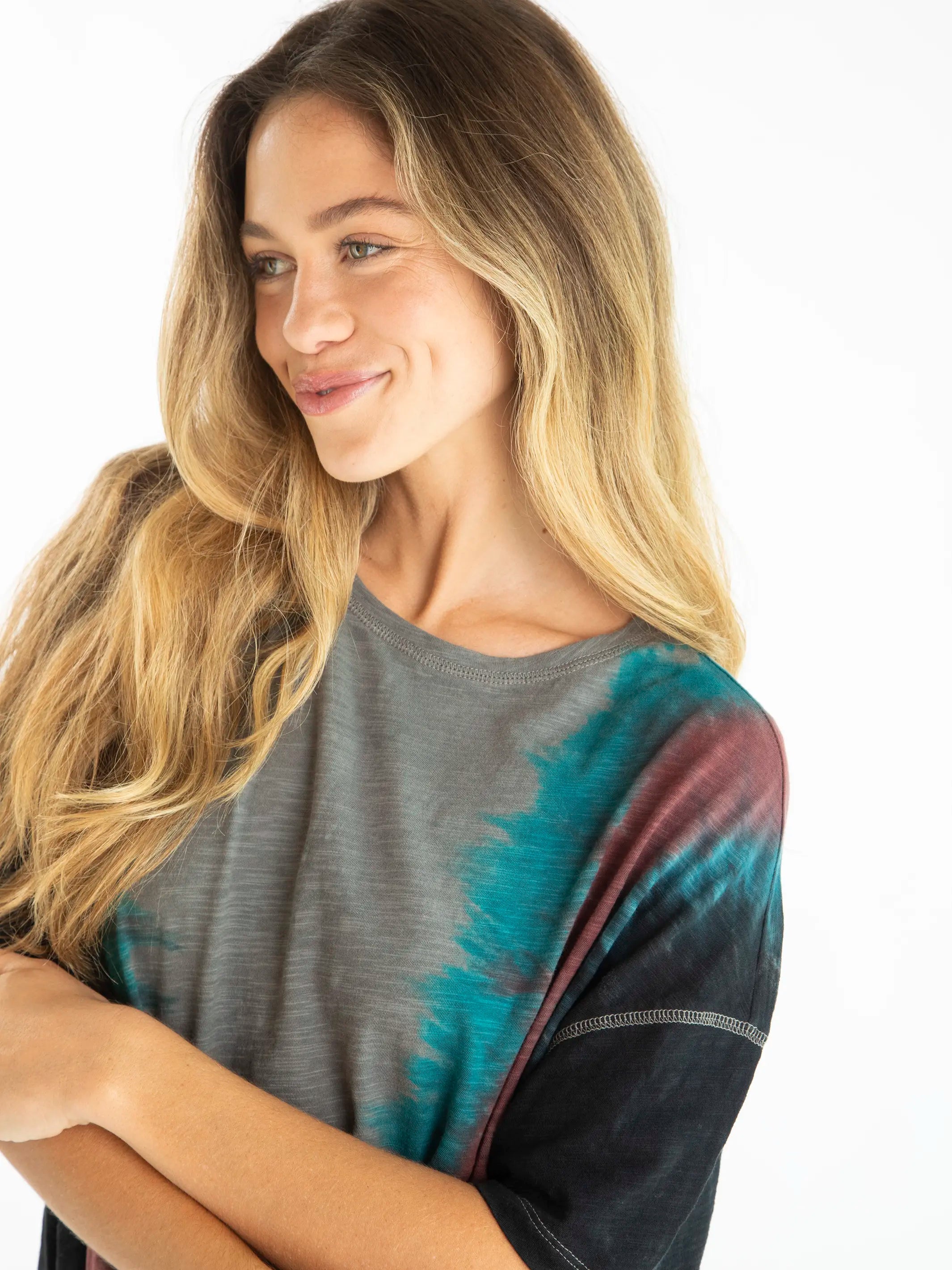 Misty Oversized Cotton Tee Mini Dress - Turquoise Tie-Dye