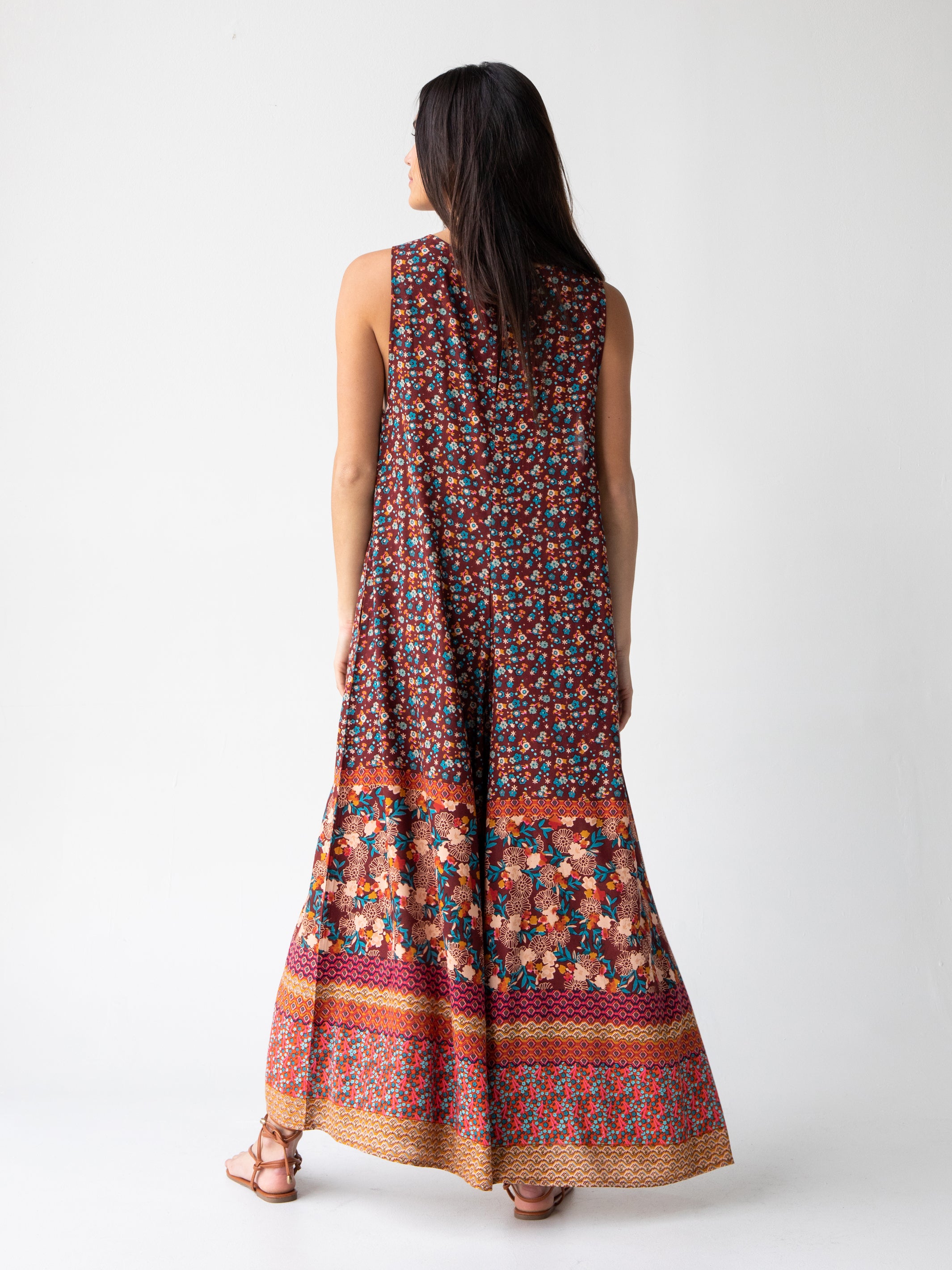 Let's Just Go Wide-Leg Jumpsuit - Tan Border Print