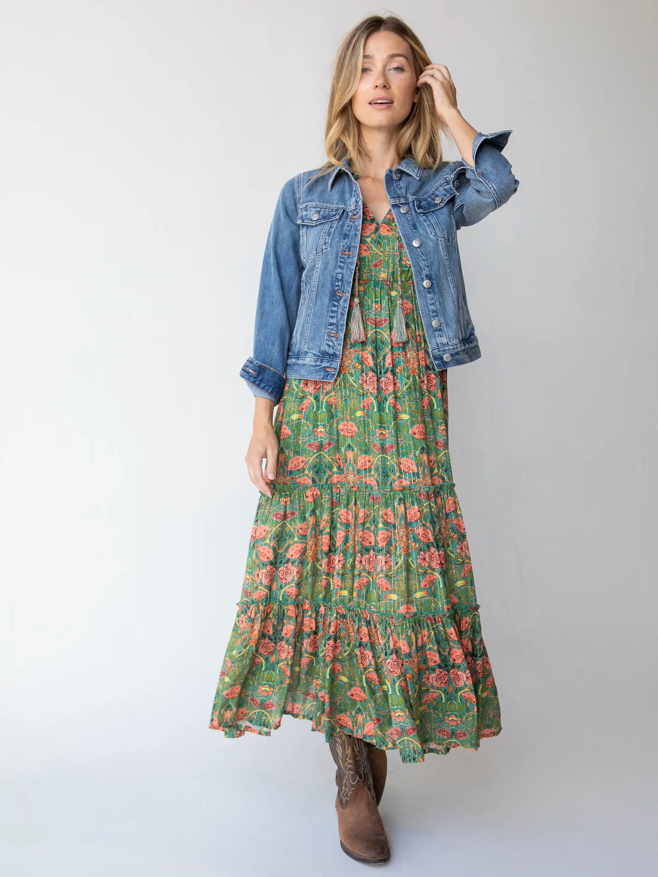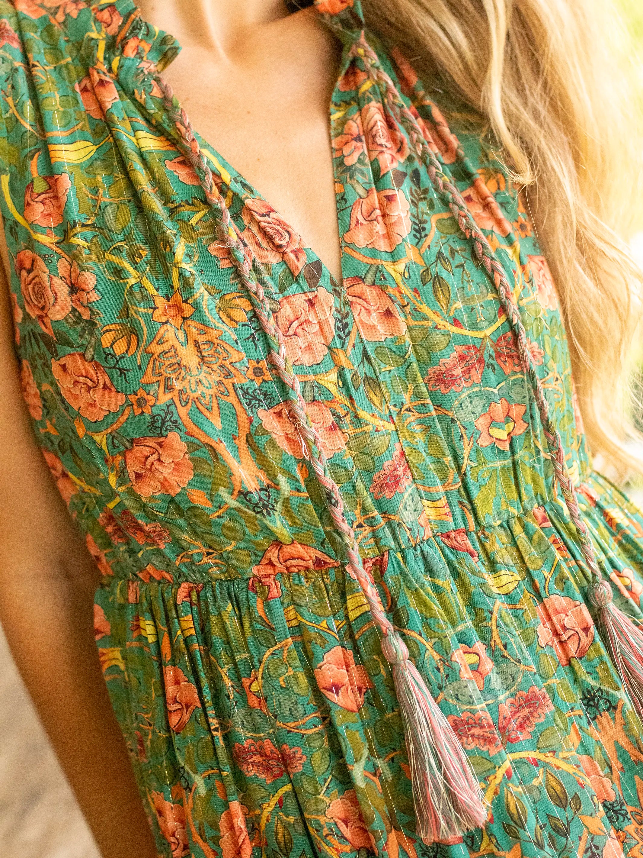 Luella Sleeveless Maxi Dress - Turquoise Pink Roses